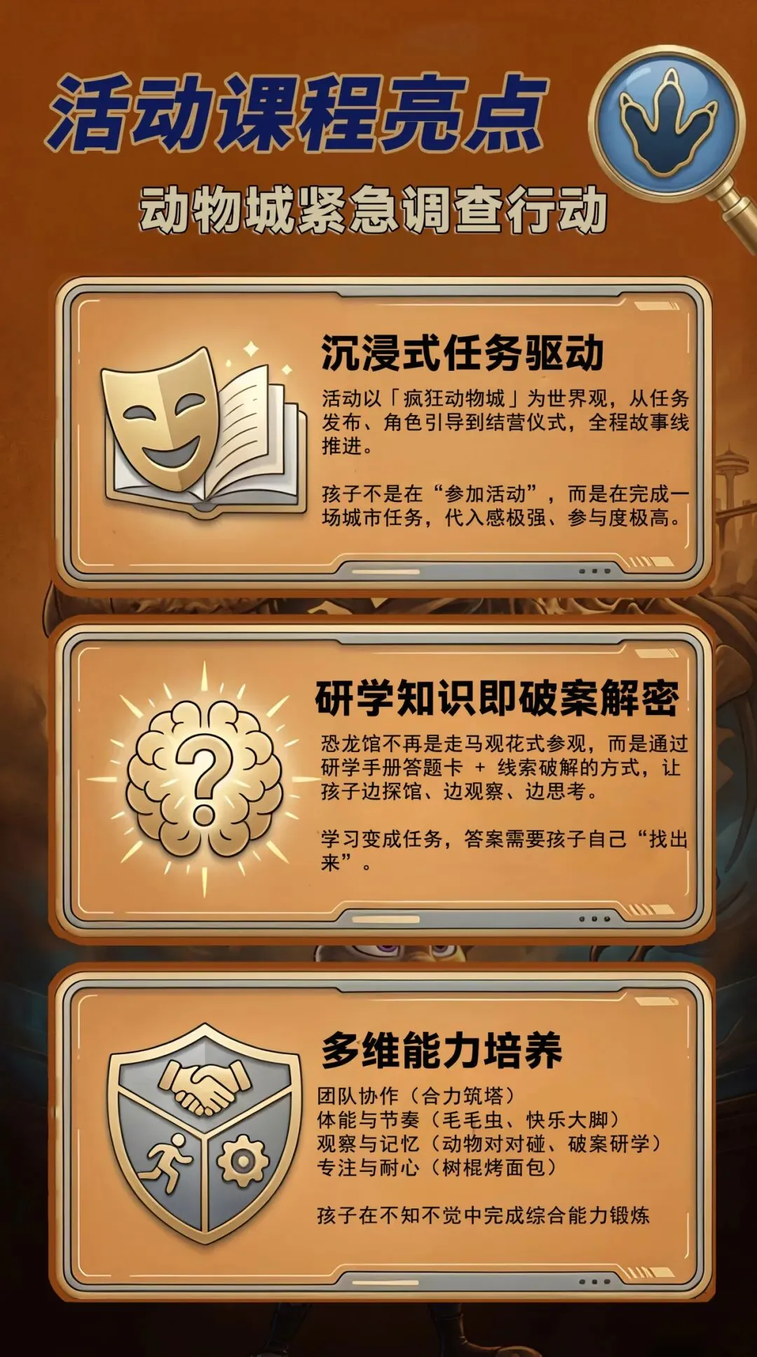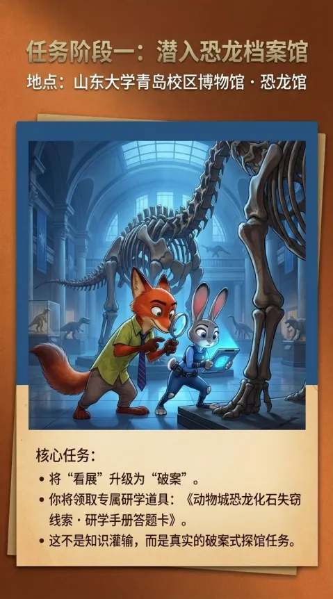 当恐龙化石神秘失窃,动物城紧急启动调查行动孩子将化身 少年调查员,在山大博物馆中破解线索、还原真相。