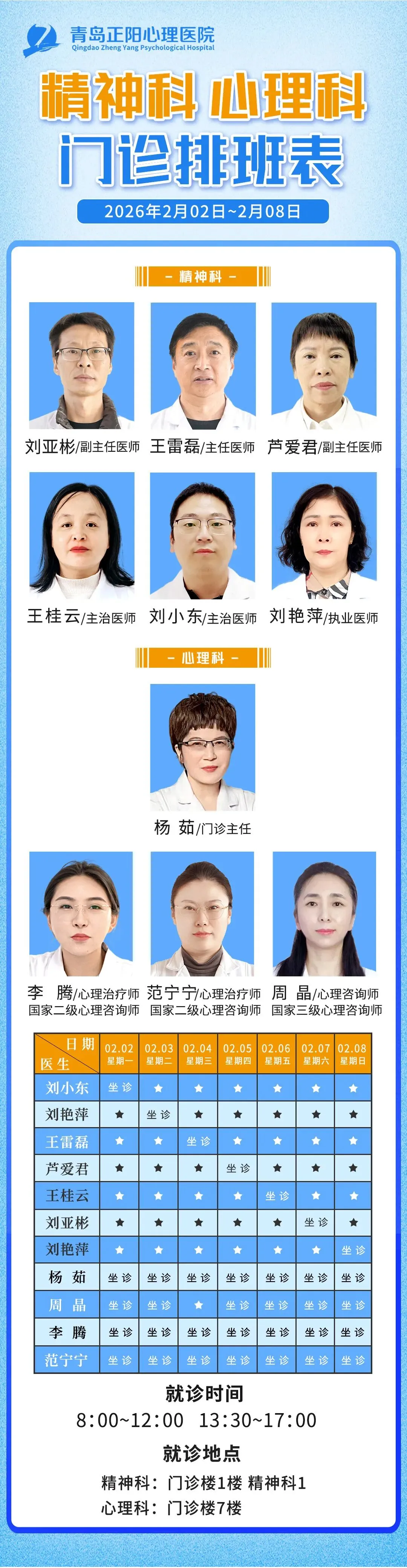 (2026年02月02日至02月08日)医师坐诊信息