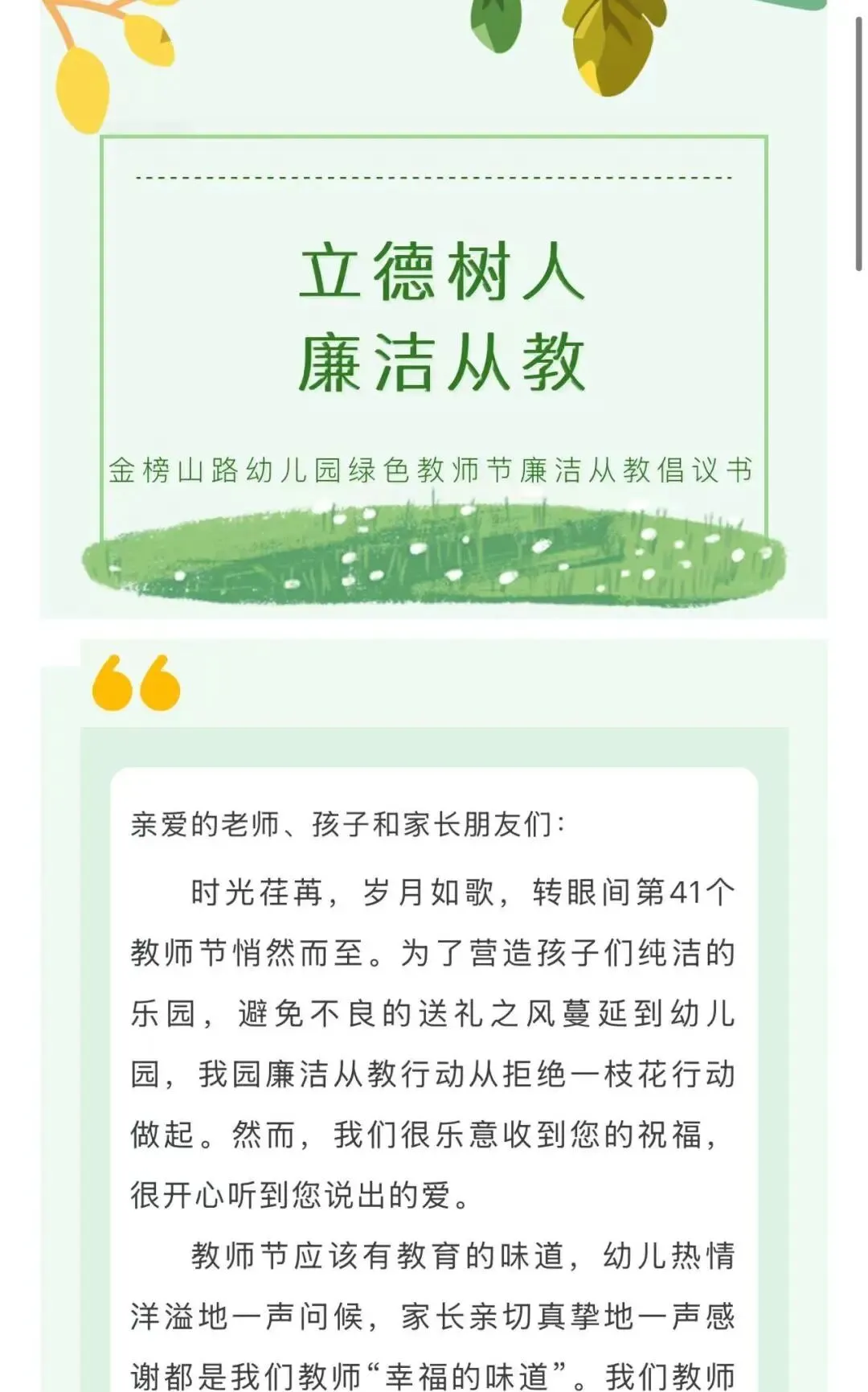 开展“我身边的育人故事”分享活动、“廉洁从教 从我做起”等学习,组织16次专题学习,从思想认识、行为规范等多维度强化教师师德素养,让老师们廉洁奉公、坚守底线,全心全意为幼儿服务,以高尚品德赢得家长的信任与支持。