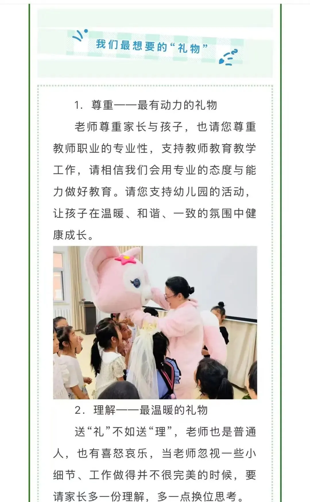 美好的教育,是一群人同频共振的回响;温暖的共育,是家园以孩子为圆心的相守;坚定的奔赴,是携手为孩子筑造成长的港湾。开学典礼、早操展示活动等等,这些活动的开展让家长更直观地了解幼儿在园学习生活情况,积极参与园内各项活动,有效达成家园教育一致性,获得家长广泛好评。互动式、小组式家长会,凝聚教育共识。各班家长会打破传统“单向宣讲”模式,设置“幼儿发展案例分享”“教育困惑互动答疑”“游戏现场体验”“一日活动流程”等互动环节,聚焦幼儿共性问题,开启一场关乎爱与成长的对话。