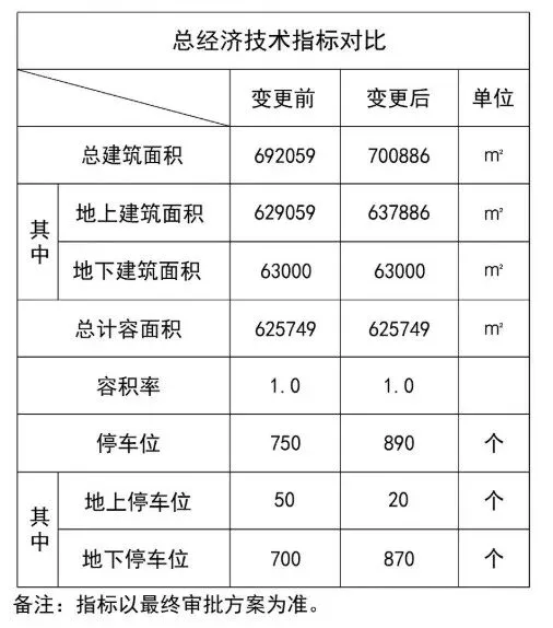 4、经济技术指标调整,详见下表: