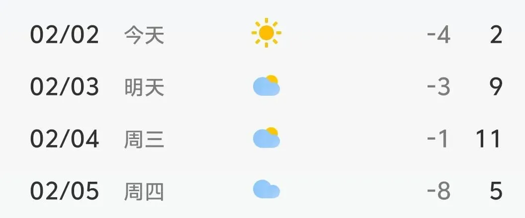 明后天,即将大幅升温,最高气温将由今天的2度,连升两级,至9度至11度。