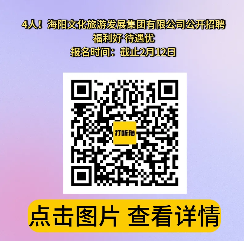 >【烟台招聘】4人!海阳文化旅游发展集团有限公司公开招聘!