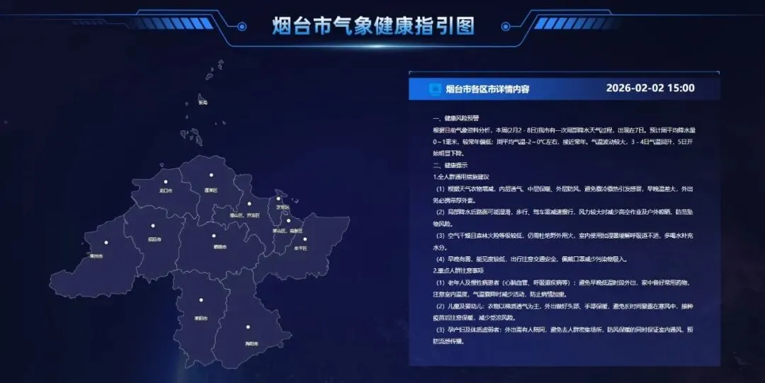 烟台市气象局、烟台市卫生健康委(烟台市疾控局)2月2日15时联合发布健康风险预警以及健康提示。