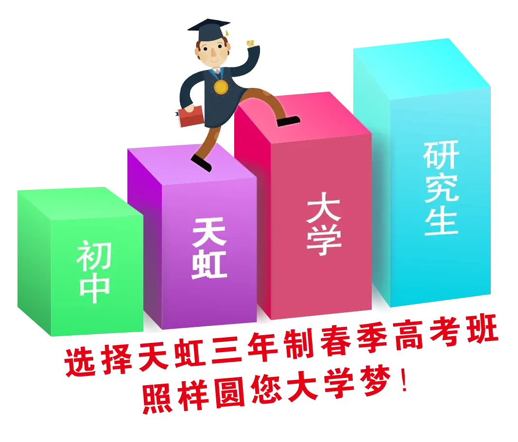 当然不是,您还可以选择烟台天虹春季高考班,三年之后照样上大学!