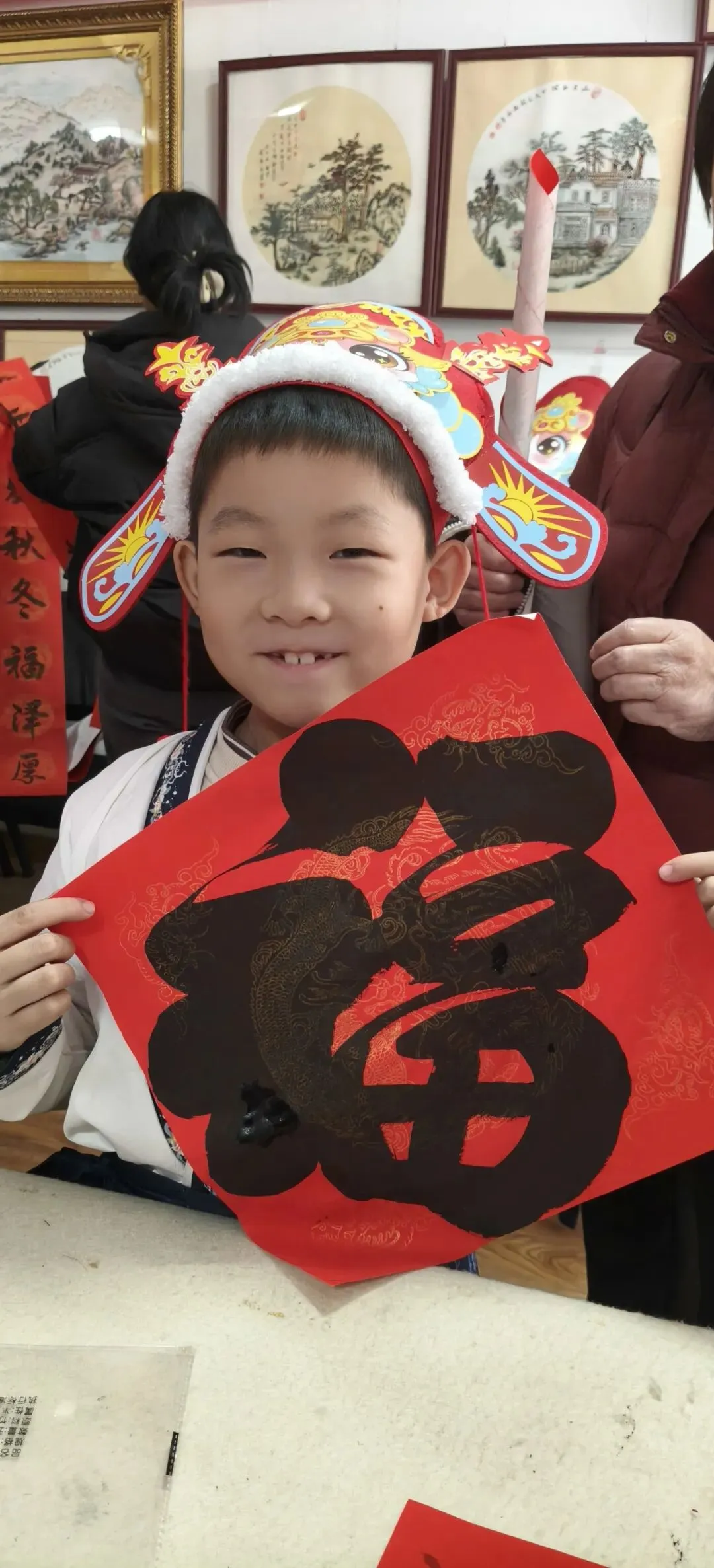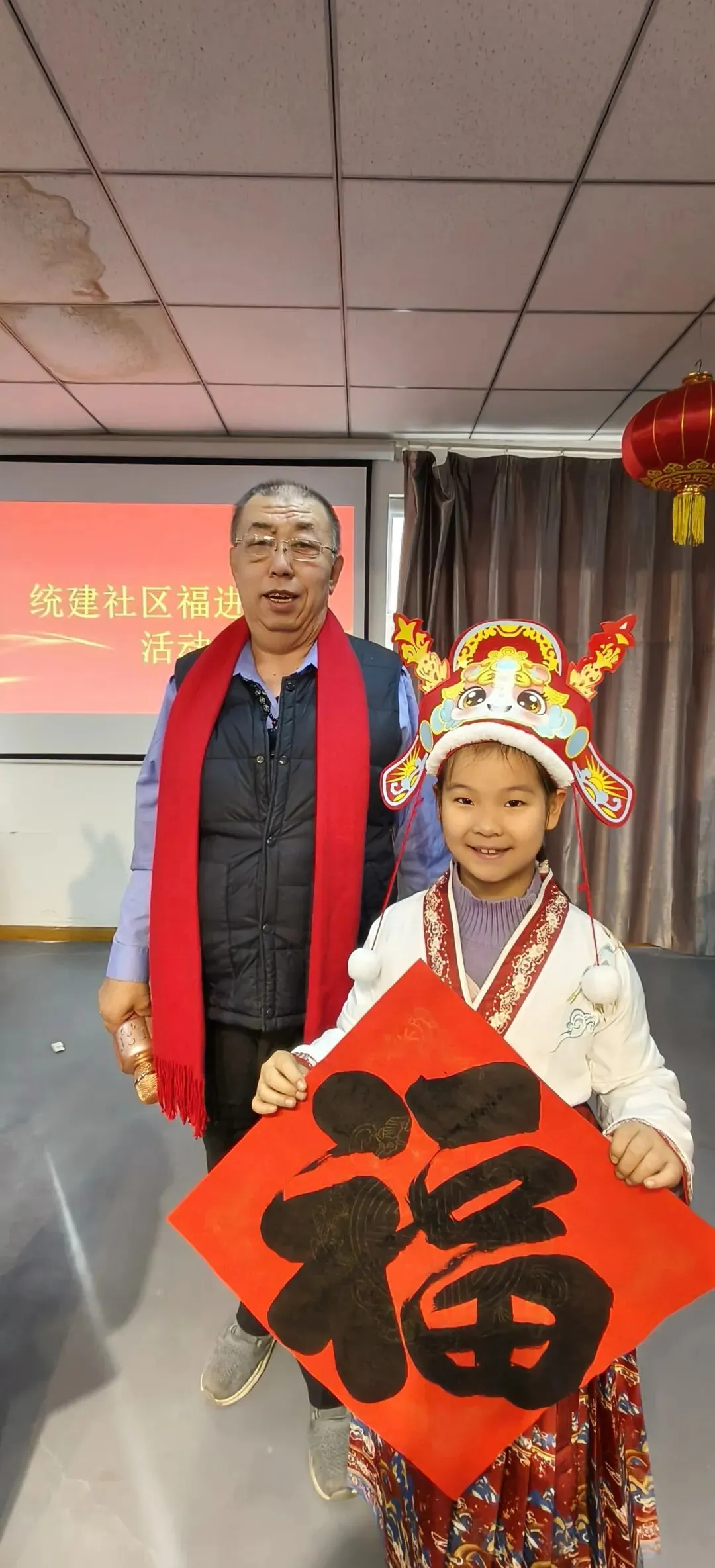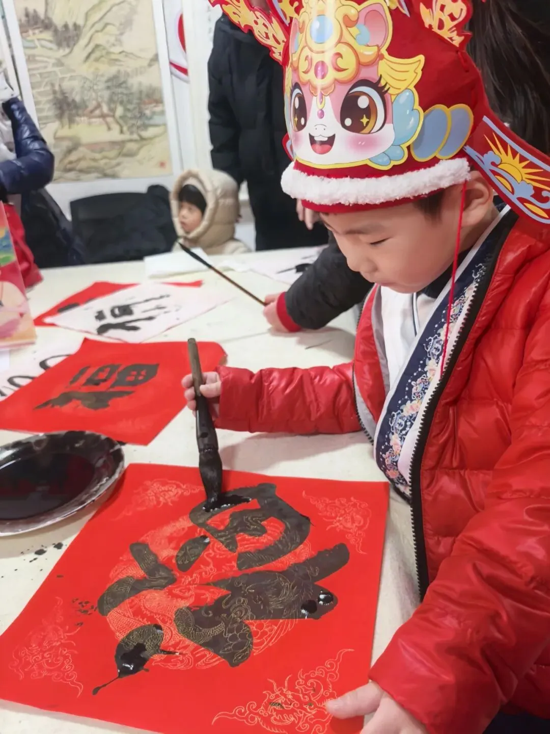 活动现场,大红的宣纸整齐铺开,墨香袅袅萦绕四周,处处洋溢着喜庆祥和的节日氛围。在老师的指导下,孩子们握起毛笔,认真学习握笔姿势、运笔技巧,将对新年的期盼、对社区的祝福尽数融入笔墨之中,一个个红彤彤、胖乎乎的“福”字跃然纸上,成为冬日里最温暖的风景。