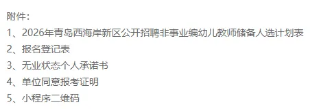 根据学前教育发展需要和招聘有关规定,2026年青岛西海岸新区面向社会公开招聘非事业编制幼儿教师储备人选26人:
