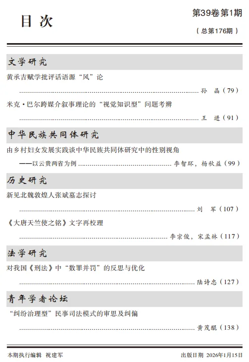 C扩《烟台大学学报(哲学社会科学版)》2026年第1期目录