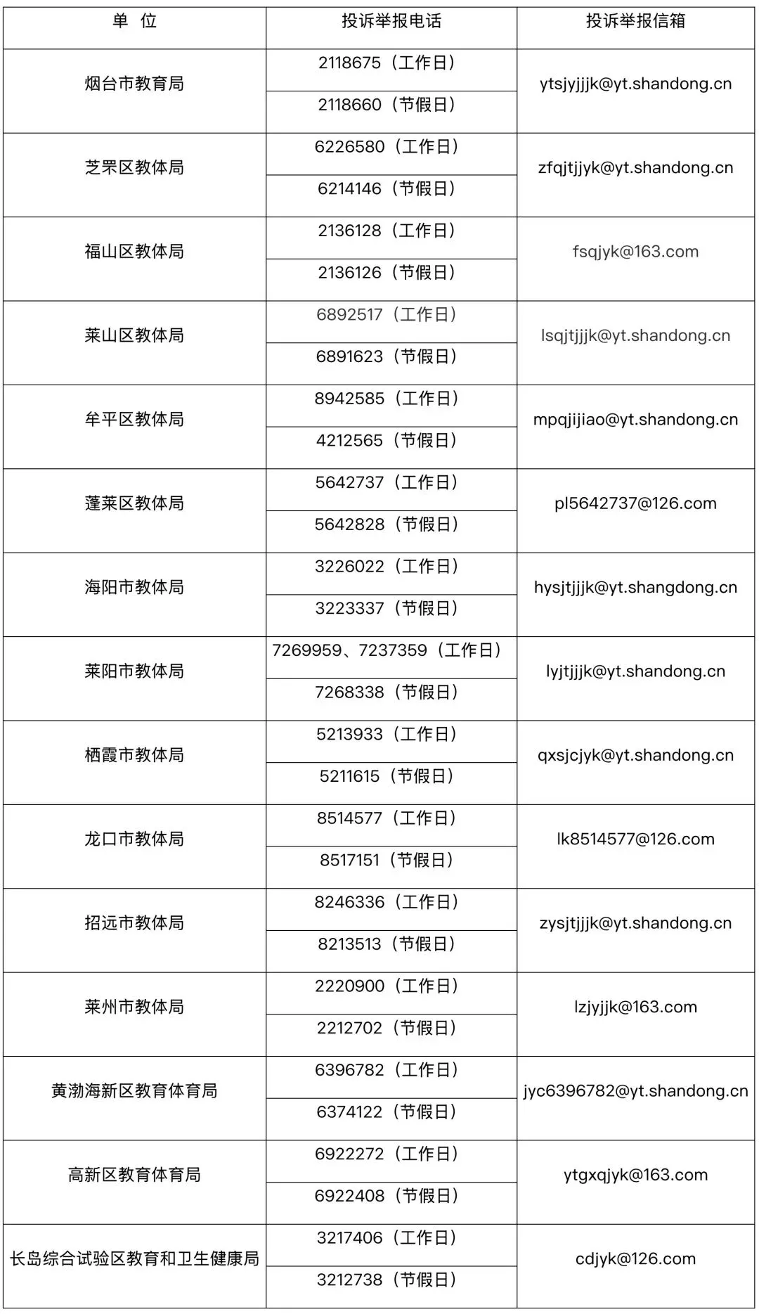 烟台市教育局今日发布了《烟台市规范办学监督举报电话、信箱》,详细内容一起来看……