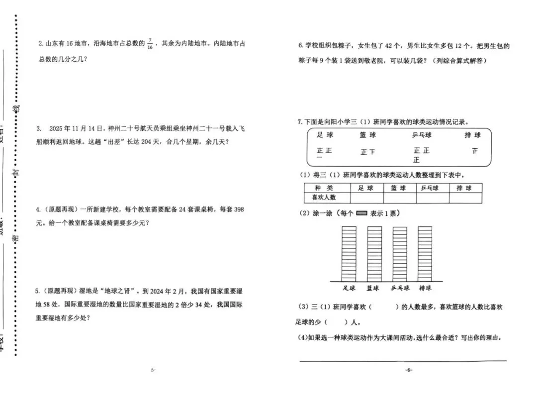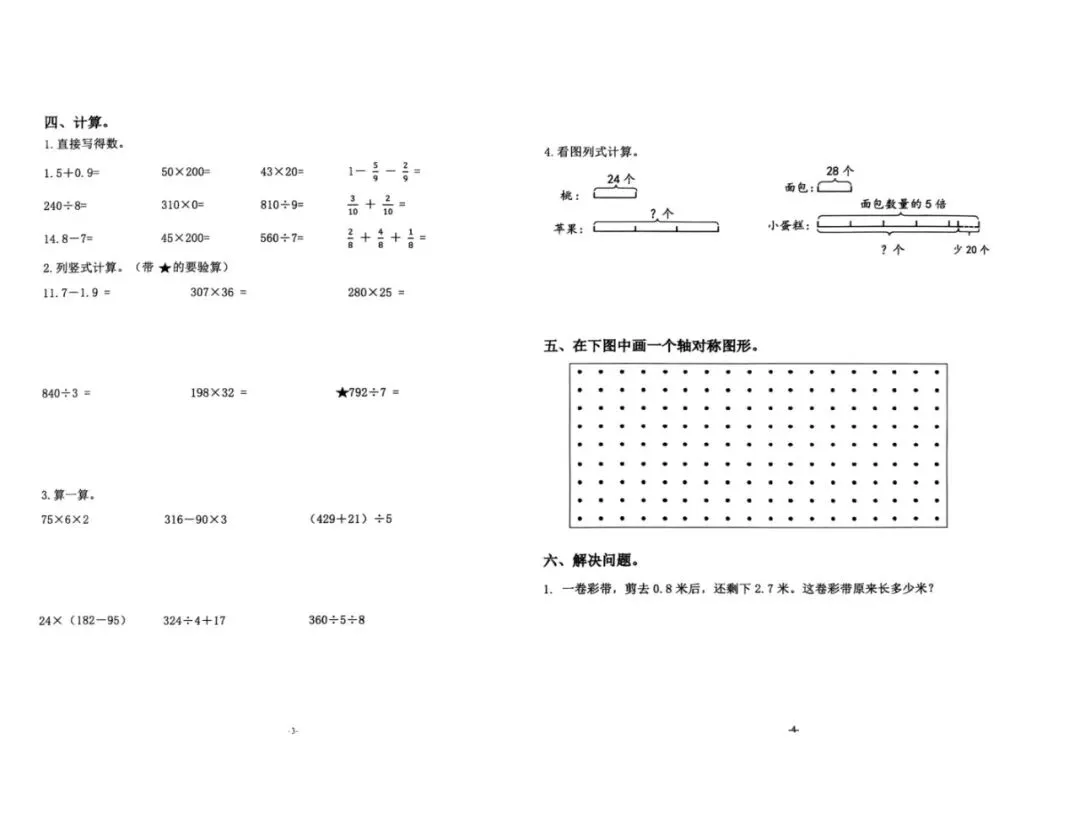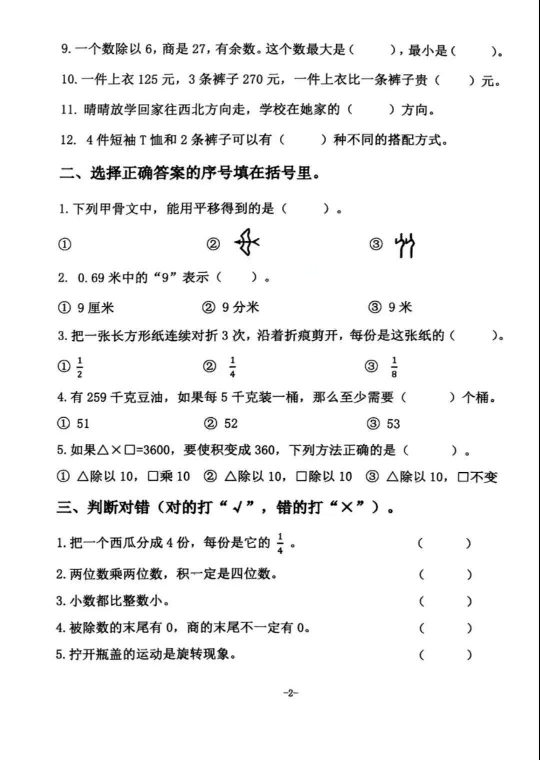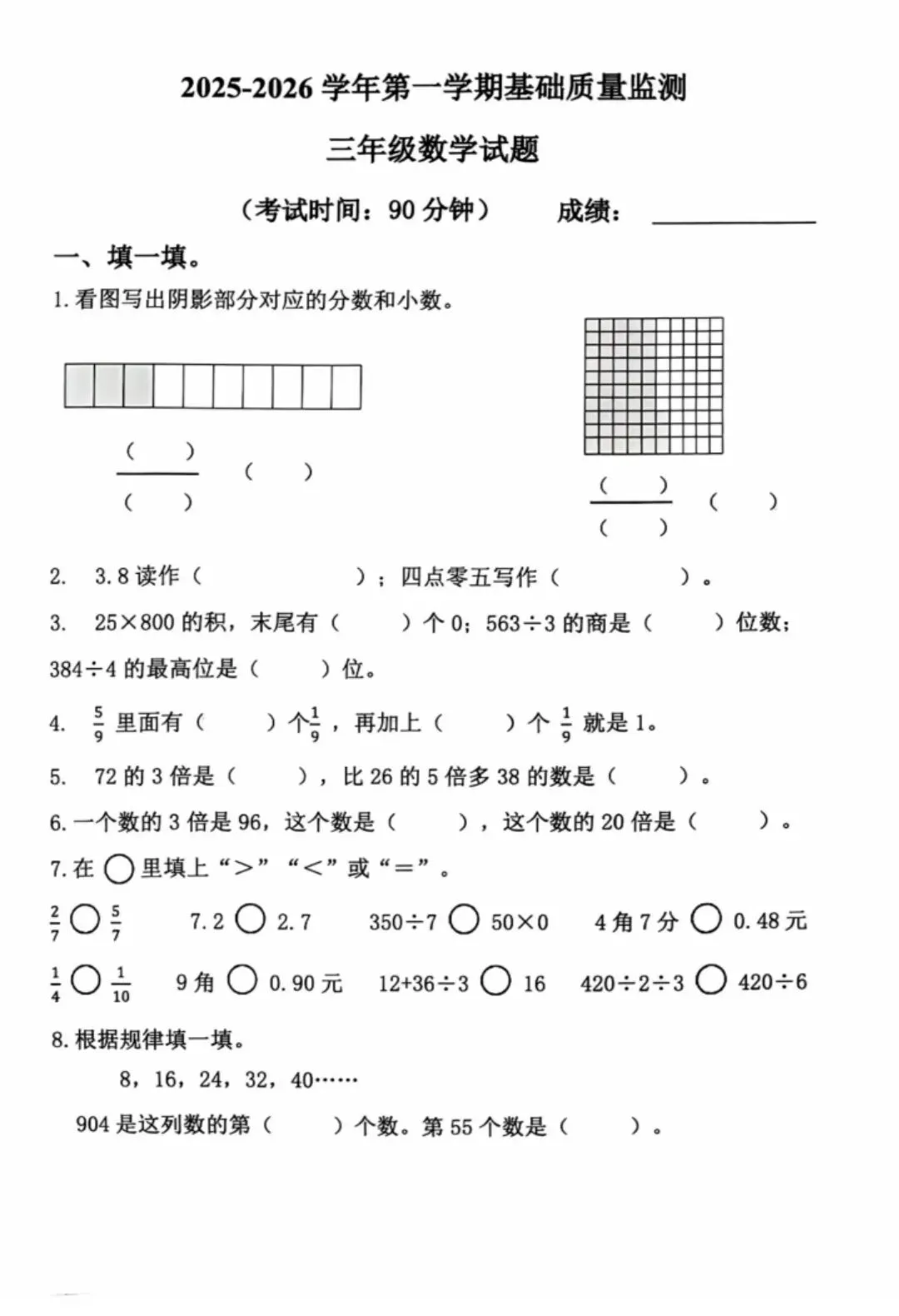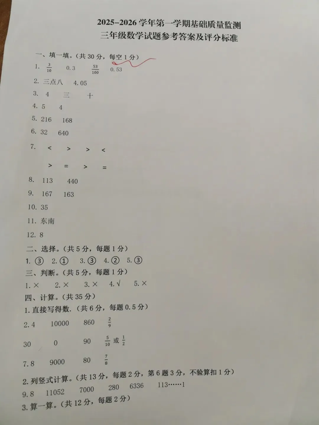 >青岛版五四制数学三上期末真题(含答案2026东营)