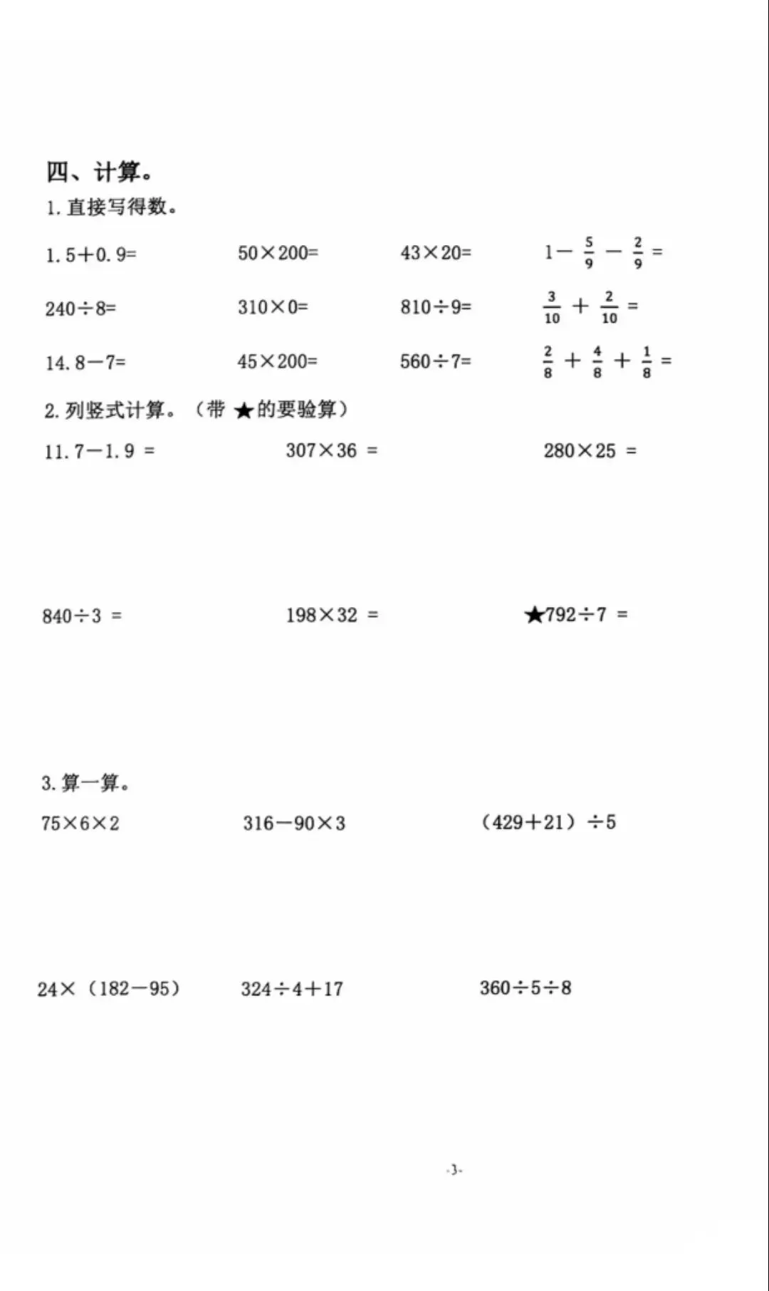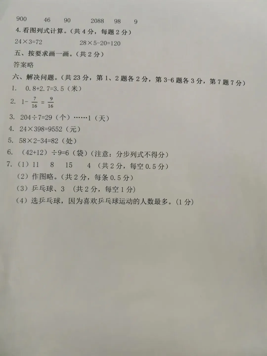 青岛版五四制数学三上期末真题(含答案2026东营)