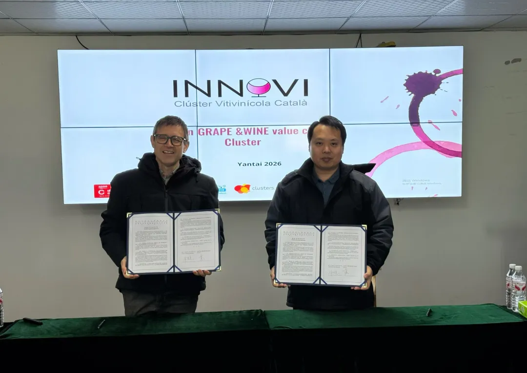 在烟台市贸促会见证下,烟台市葡萄与葡萄酒协会与西班牙innvo协会正式签署战略合作协议,建立常态化交流机制,聚焦技术创新、市场开拓深化等开展合作。这标志着两地产业合作从零散对接迈向系统化、规模化协同发展新阶段,为烟台葡萄酒产业国际化发展注入持久动力。