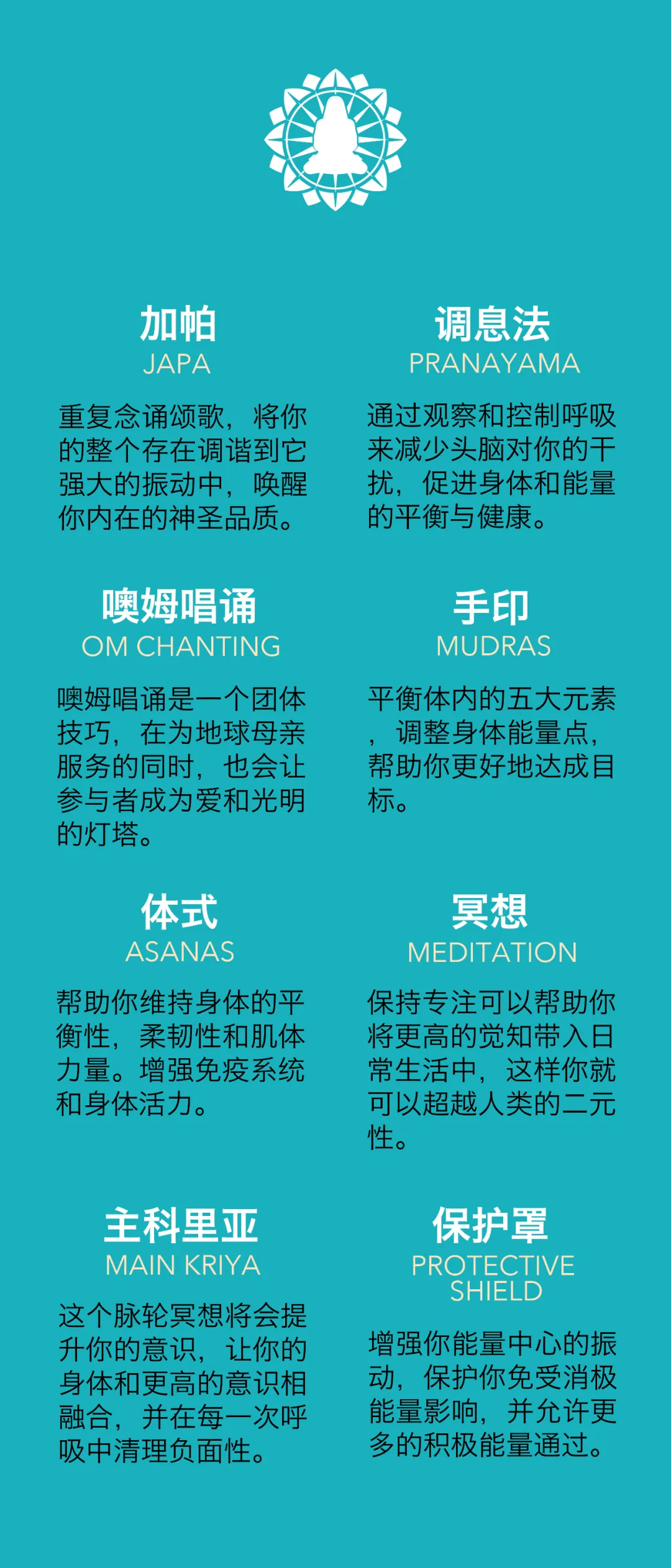 阿特玛科里亚瑜伽(Atma Kriya Yoga),是一门有着五千年古老传承,强调呼吸与冥想的瑜伽。它包含十五种强大的练习技巧,可以帮助我们打开内心,建立与内在的深度连接,唤醒心灵深处无条件的爱。这些技巧同时又十分简单易学,练习者无需具备任何体式基础就能掌握。“在更高的意识中行动”