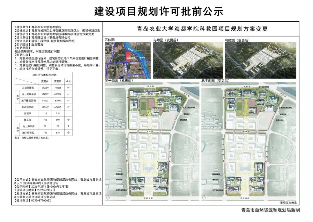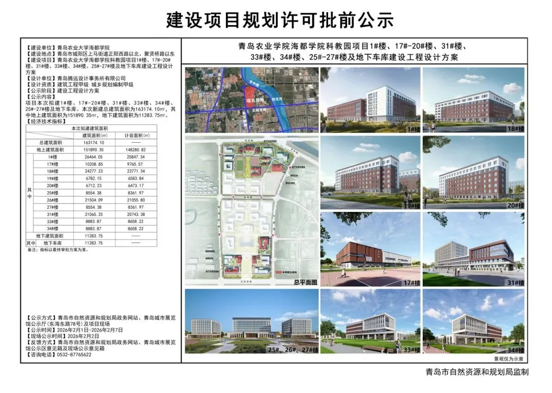 青岛农业大学海都学院科教园项目规划方案变更及1#楼、17#-20#楼、31#楼、33#楼、34#楼、25#-27#楼及地下车库建设工程设计方案批前公示