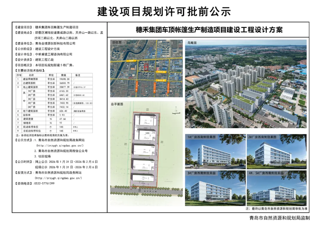 穗禾集团车顶帐篷生产制造项目建设工程设计方案批前公示