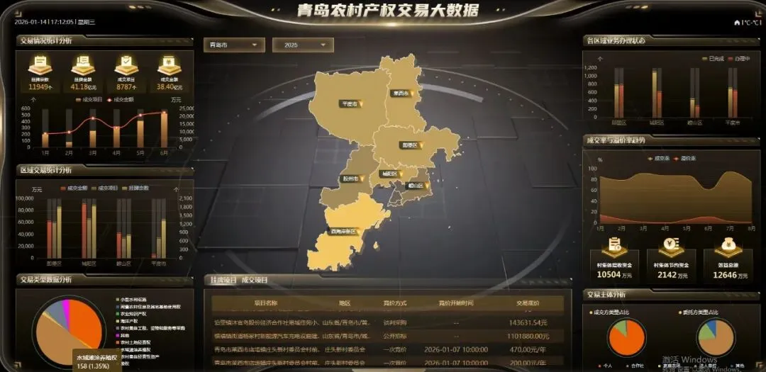 自2023年11月,青岛市获批全国农村产权流转交易规范化整市试点以来,全市搭建起统一规范的农村产权流转交易平台,创新“六统一分”交易模式,实现规定范围内的农村集体资产资源100%线上交易。2025年,全市农村产权流转交易额达到43.4亿元,其中线上交易额38.4亿元,是2024年的近4倍,为村集体增收节支1.26亿元,相关工作走在全省前列。市委组织部、市财政局、市行政审批局、市农业农村局等部门协同发力,各区市上下联动,涌现出了一批先行先试、溢价增收的典型案例,现择优发布10个代表性典型案例。