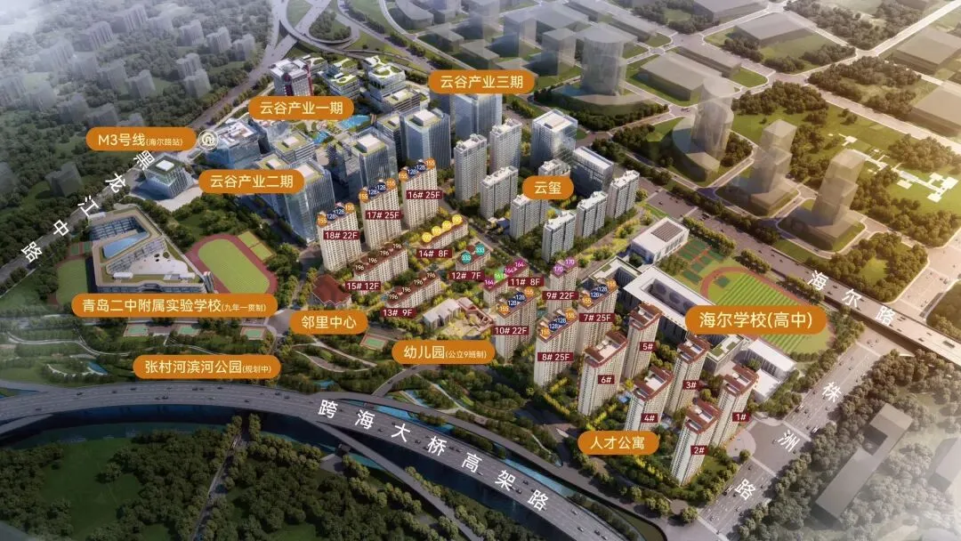 配套上,海尚府地处三区交汇核心,依托海尔云谷红利,地铁、商业、三甲医院、山海生态资源一应俱全,实现教育、居住、休闲的融合。