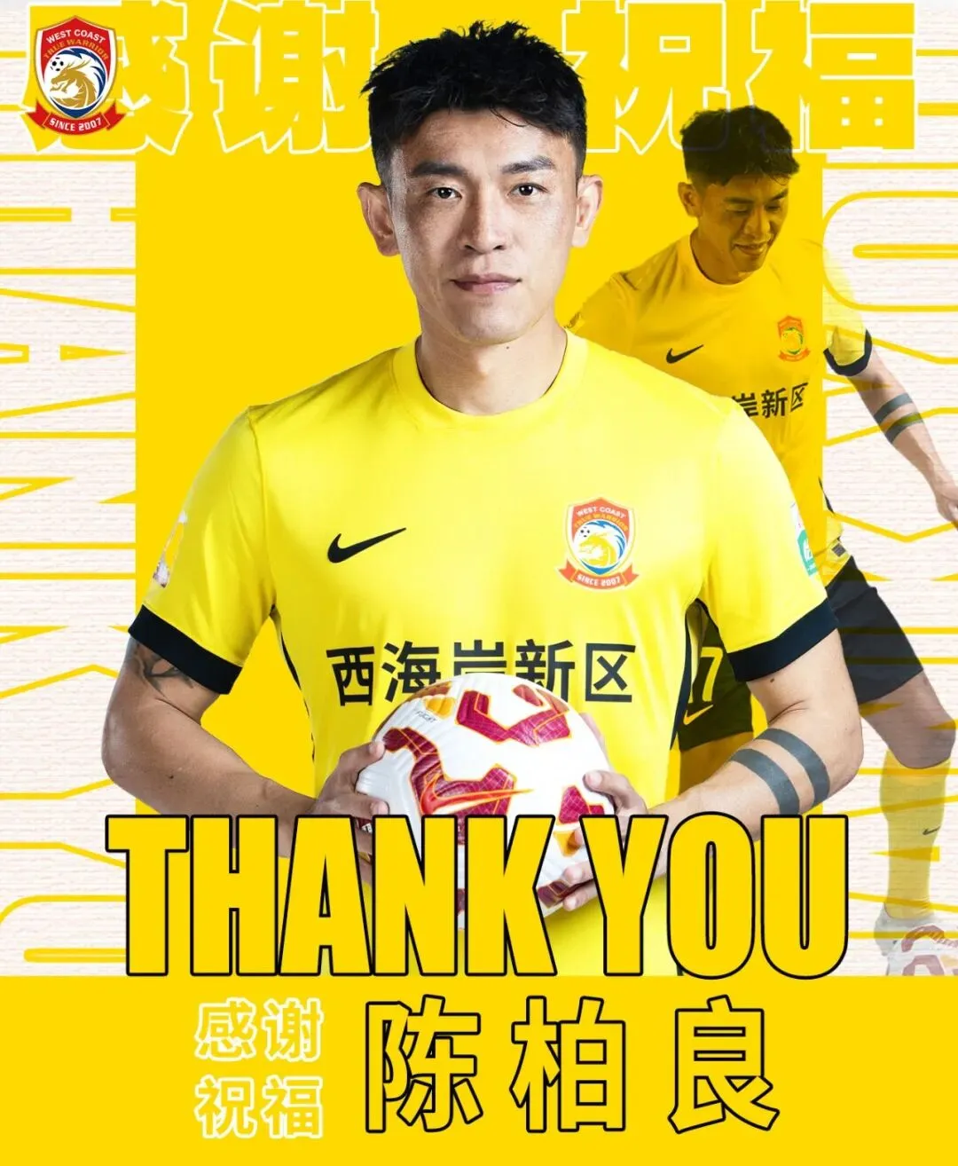 山水万程,皆有好运。青岛西海岸足球俱乐部衷心感谢陈柏良为球队发展作出的卓越贡献,祝愿他未来前路光明,在人生新赛场收获圆满。