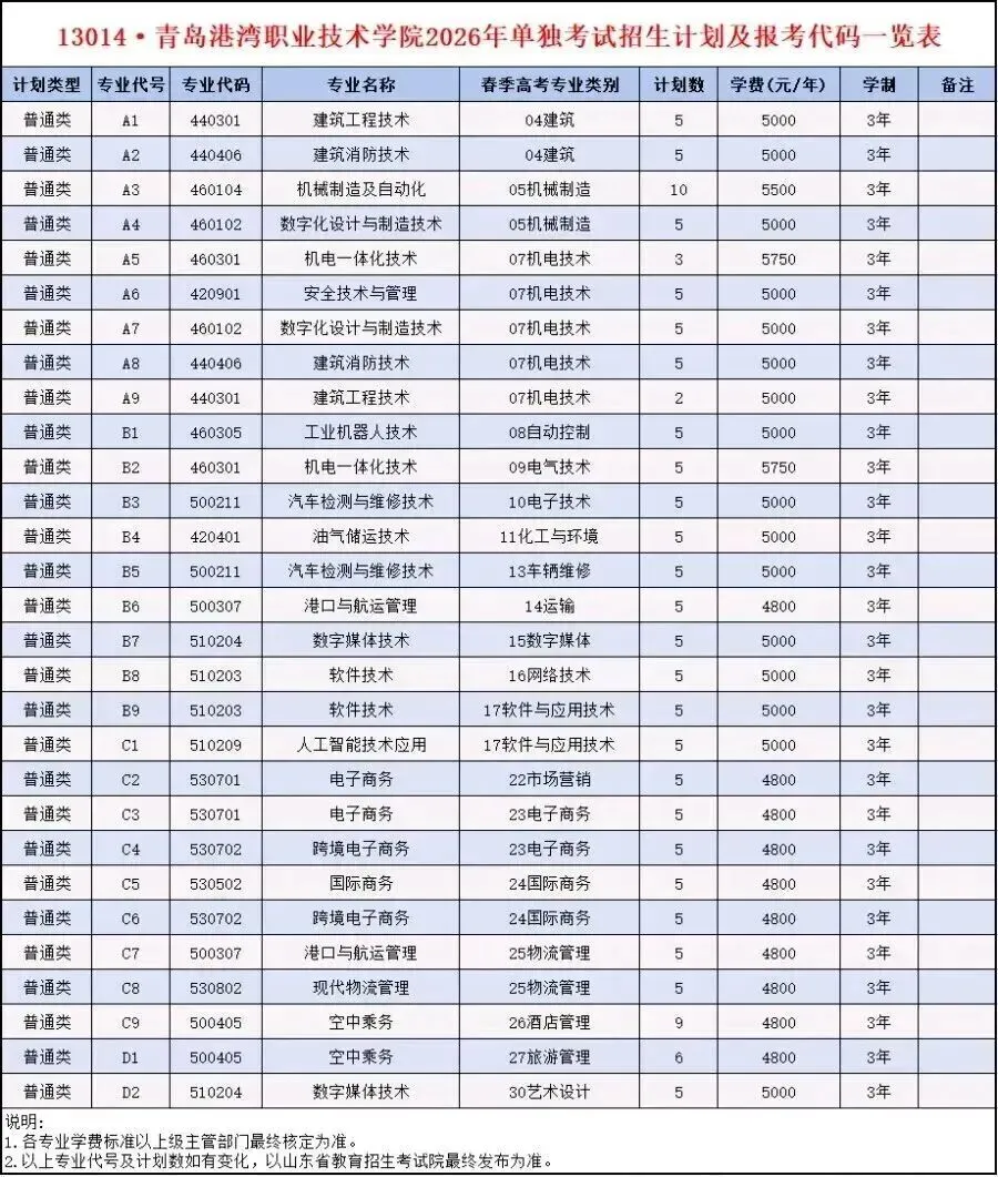 >青岛港湾职业学院·2026单招拟招生计划!