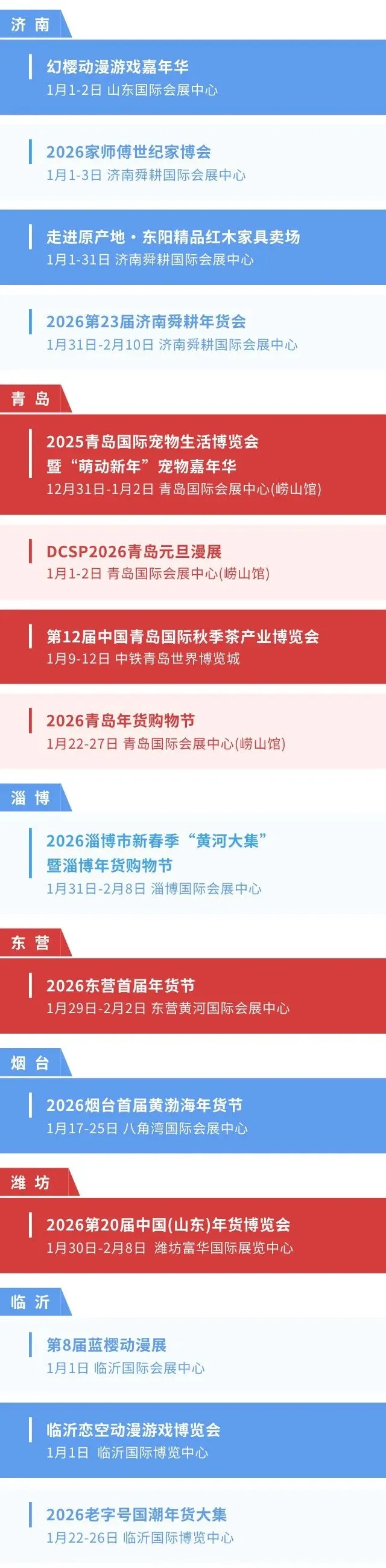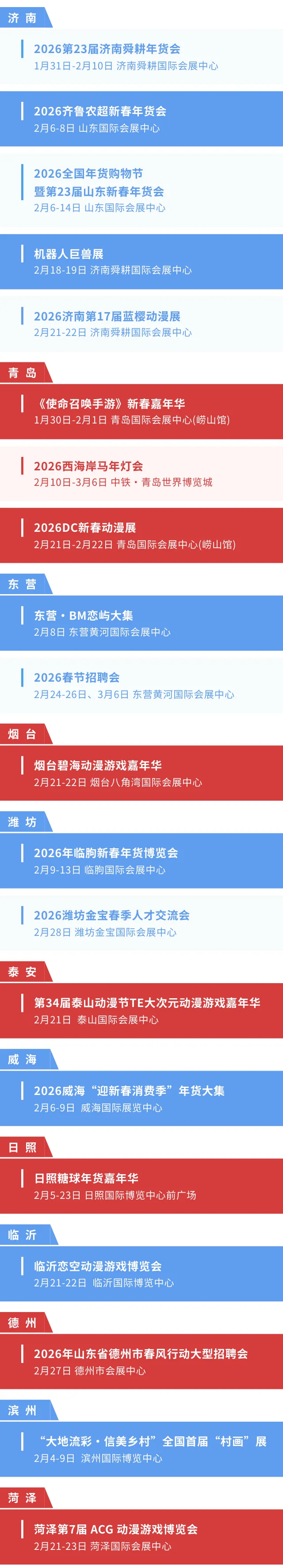● 2026年1月-2月份山东展会预报表更新时间为2026年02月02日;