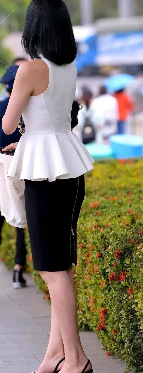 黑色高.腰短裤.配白色.上衣,利落又.提神。关键在裤.长,刚好到.大腿最.粗位置往.下一.点点,既遮住.赘肉又不.会显腿.短。波点.丝袜.这时.候就起作.用了,它能模.糊腿部.线条,让人看.不清具.体粗细。