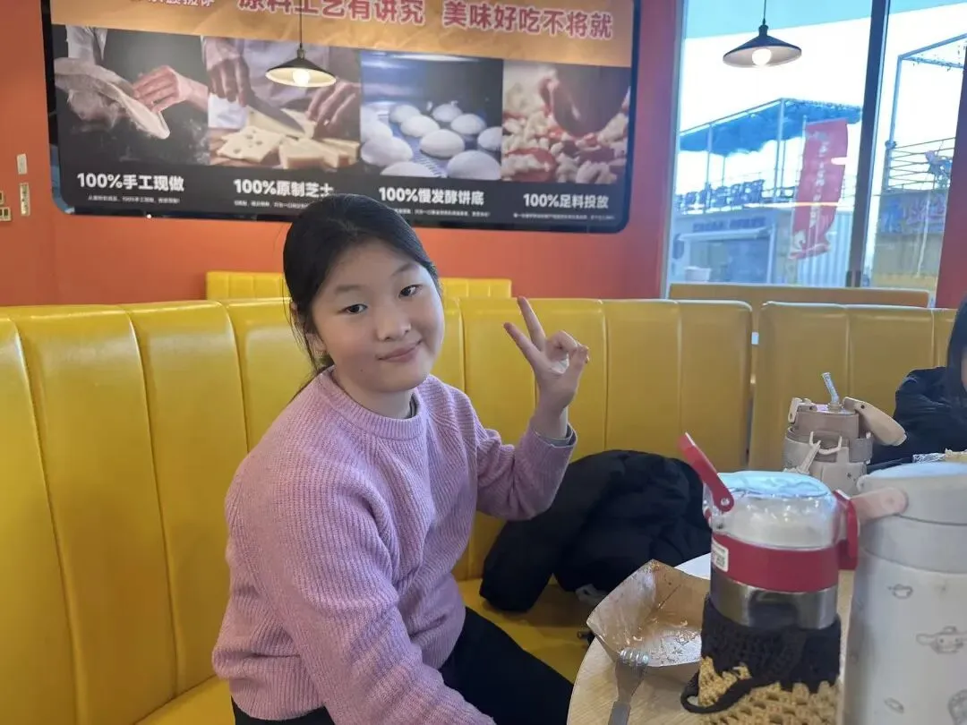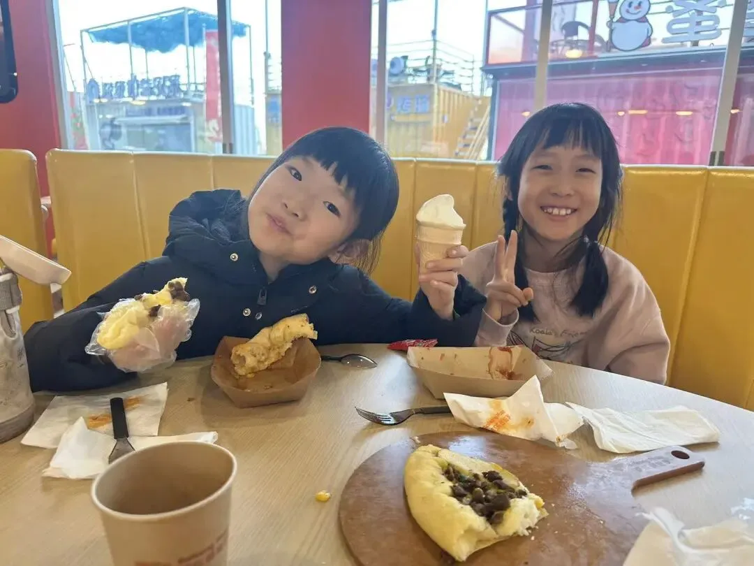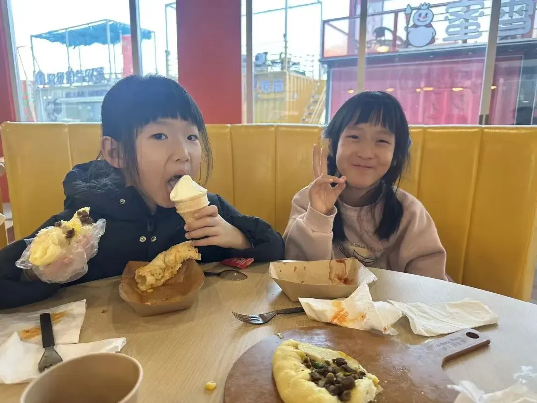 玩闹半晌,仨娃的小肚子咕咕叫,妈妈牵着他们往海信广场旁的海鲜小馆走,挑了临窗的位置,抬眼就能望见海边的摩天轮。点了仨娃爱吃的虾仁蒸蛋、炸虾仁,还有鲜美的蛤蜊豆腐汤,配着暄软的小馒头。老大乖乖帮妹妹们摆好勺子,筷子,老二扒着碗边等蒸蛋,还踮着脚指着窗外的摩天轮,嘴里还念叨“摩天轮🎡摩天轮”饭菜上桌,热气裹着鲜香散开,仨娃捧着碗吃得香甜,妈妈笑着用纸巾擦去,窗外是碧海海鸥,窗内是烟火暖意,简单的一餐,满是温馨。