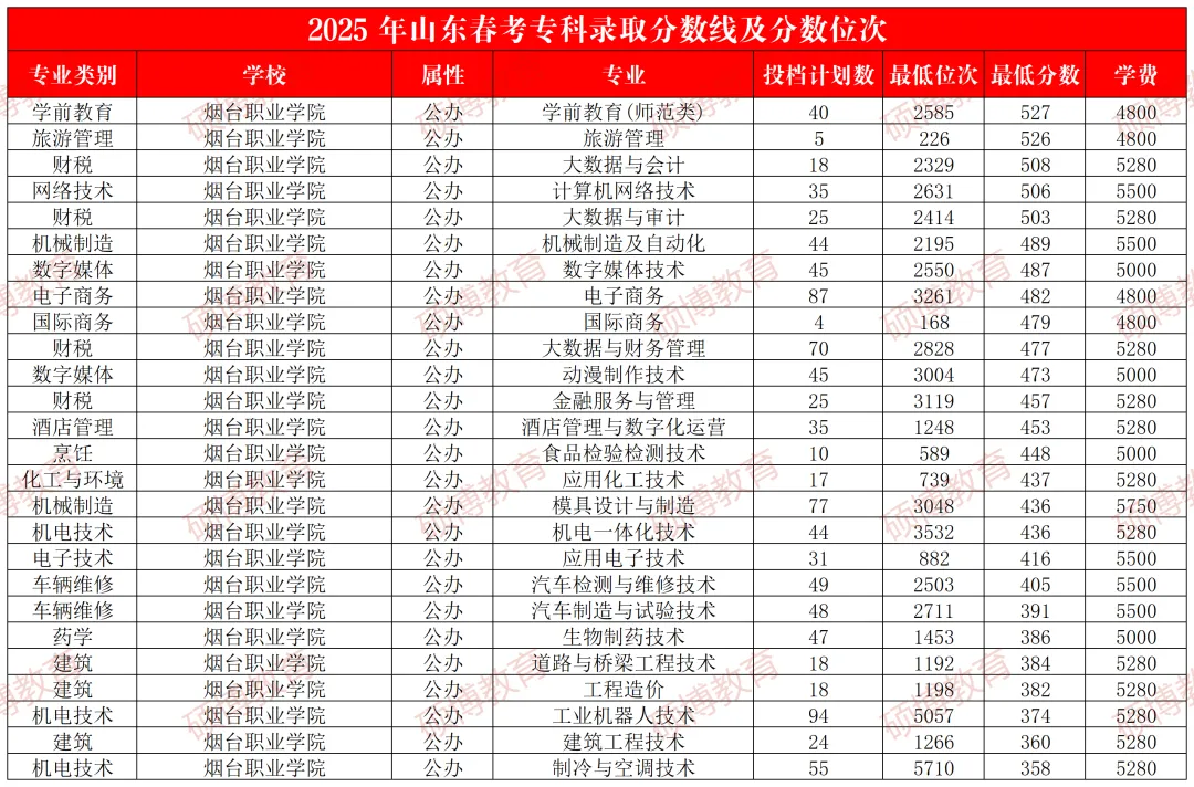 截至2024年5月,学校有烟台两个校区;截至2024年12月,21个专业,在校生11000余人;有教职工646人; 截至2025年6月,设有9个系部。