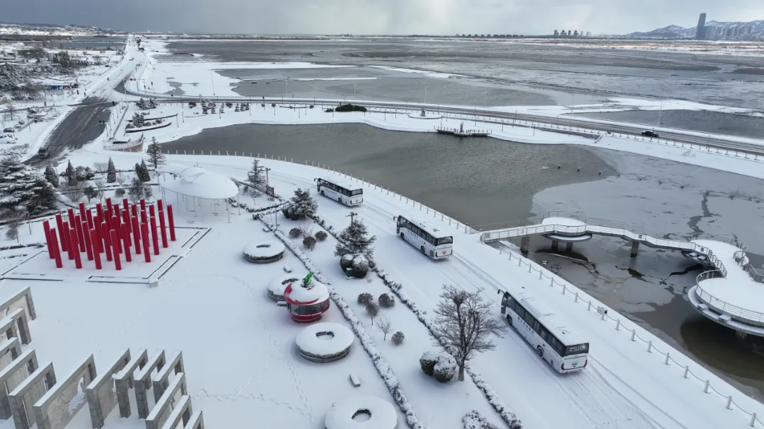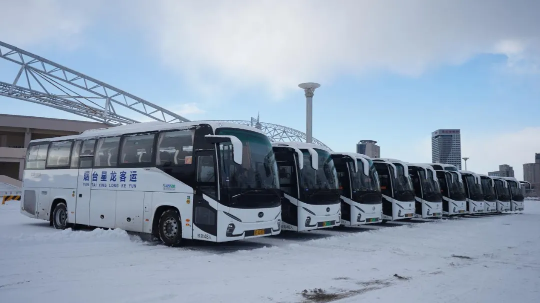今年一月中旬,烟台迎来强降雪。星龙客运的旅游定制服务依旧从容运行。由海格新V系纯电客车组成的车队,在漫天大雪里平稳行驶。车外银装素裹,车内温暖舒适,游客们在凛冽冬日中感受到别样的浪漫与安心。这种极端天气下的稳定表现,不仅凸显出车队运营保障的硬核实力,也成为星龙客运总经理程磊持续与苏州金龙合作的源动力。