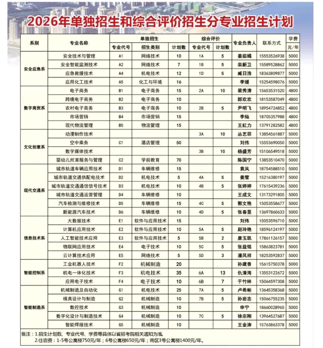 【院校简章】烟台工程职业技术学院2026年单招综评招生计划
