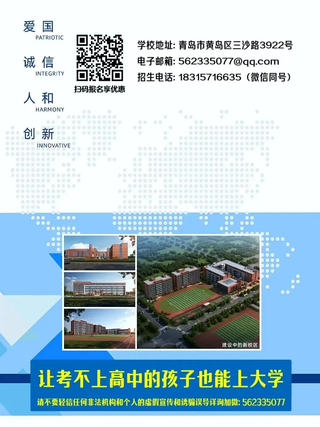 >青岛建国学校2026年招生简章职教高考升学保专冲本/夏季高考职普融通国防教育定向军士/中高职一体化升学报考指南(山东)