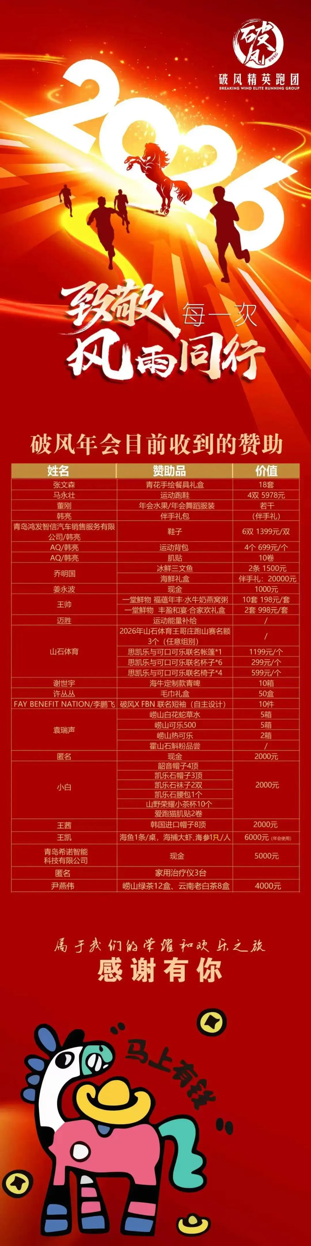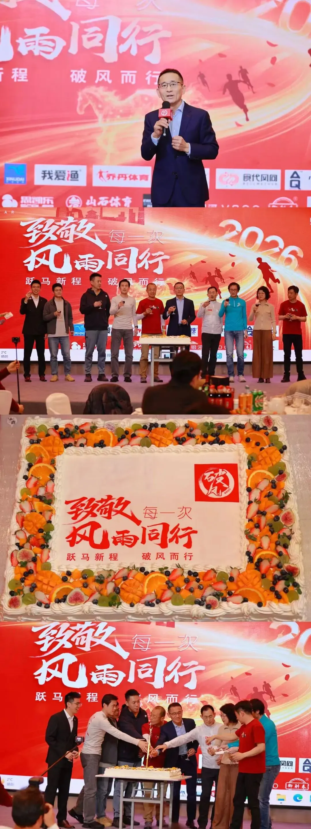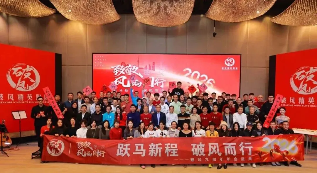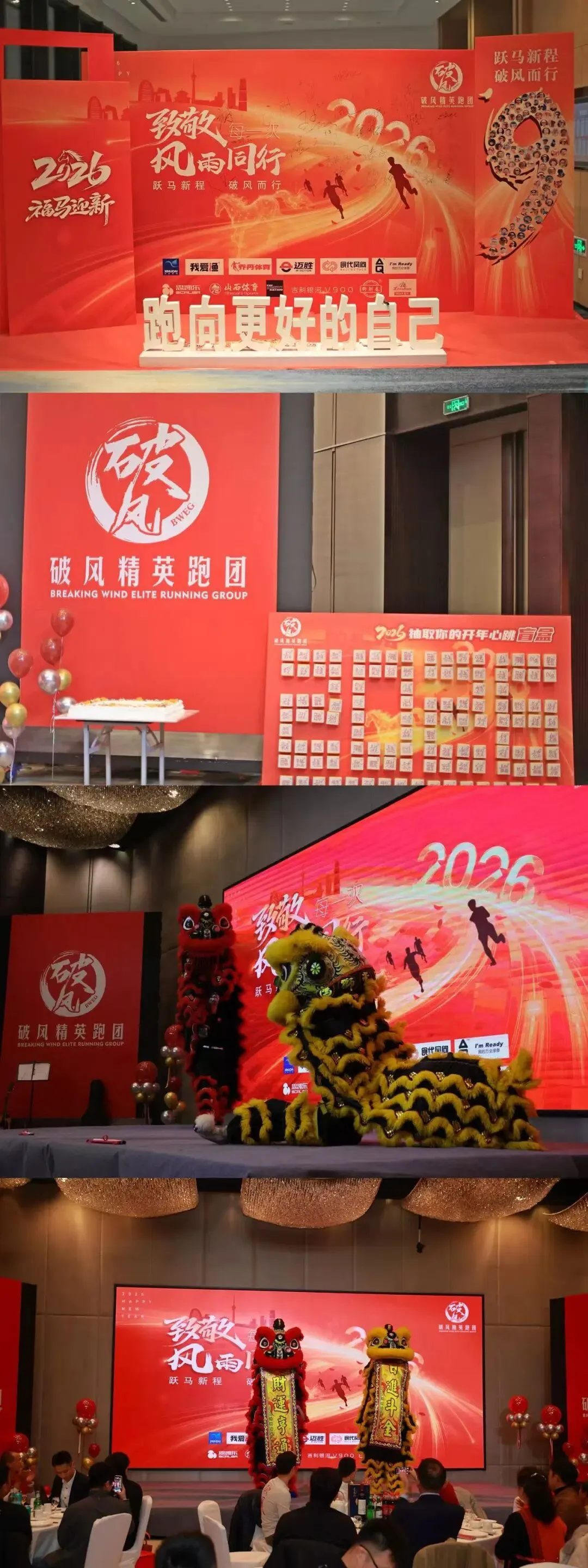九年的陪伴,九年的成长,感谢每一位跑友的支持与付出。今夜的举杯欢歌、掌声笑语,都将化作前行的力量。让我们携手共进,2026跃马新程,破风前行!期待在未来的赛道上,继续与您并肩作战,共创辉煌!
