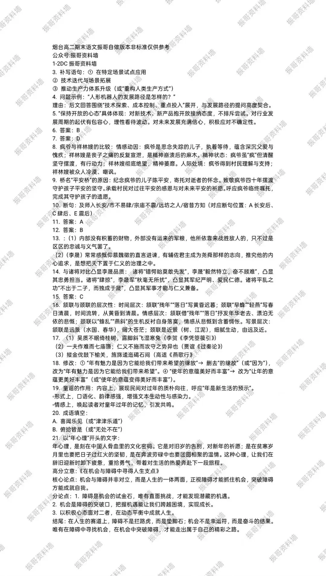 语文自做答案(高分版)