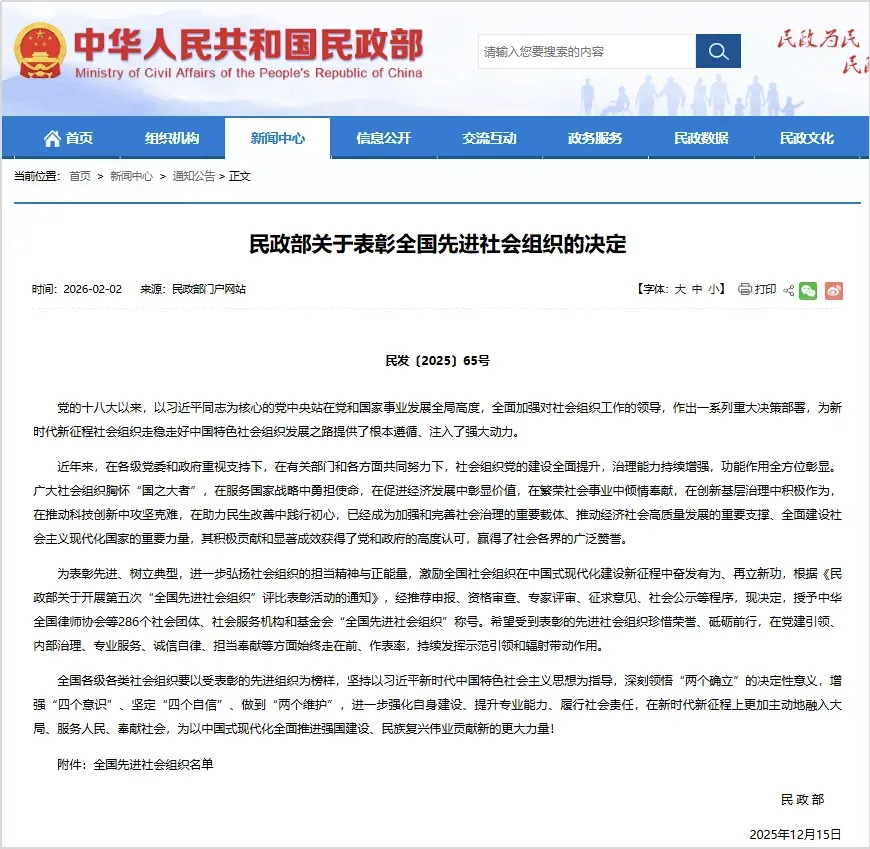 此次市慈善总会获评“全国先进社会组织”,既是对其自身工作的充分肯定,也是对我市社会组织规范化建设与高质量发展的积极认可。成绩的取得,离不开市委、市政府的坚强领导,离不开社会各界的广泛参与,也是全市社会组织持续健康发展的一个生动缩影。