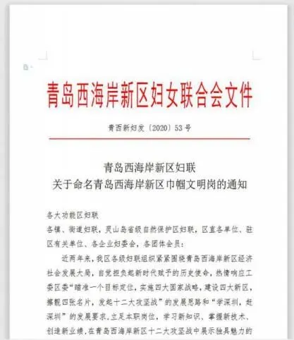 1.灵珠山蓝丝带康养服务队于2020年被青岛西海岸新区妇联命名为青岛西海岸新区巾帼文明岗。