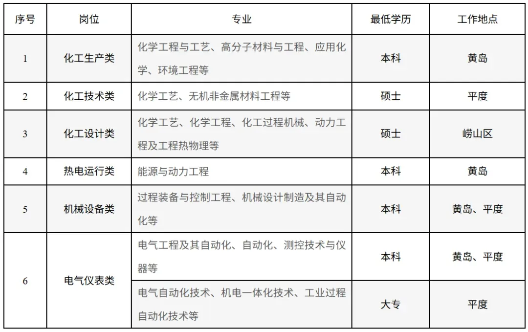 简历请投至海湾集团校园招聘邮箱:hwxz@qdhw.com,邮件主题及简历统一格式为:“毕业年度-专业-学历-毕业院校-姓名”例如:2026-化学工程与工艺-本科-XX大学-张三。