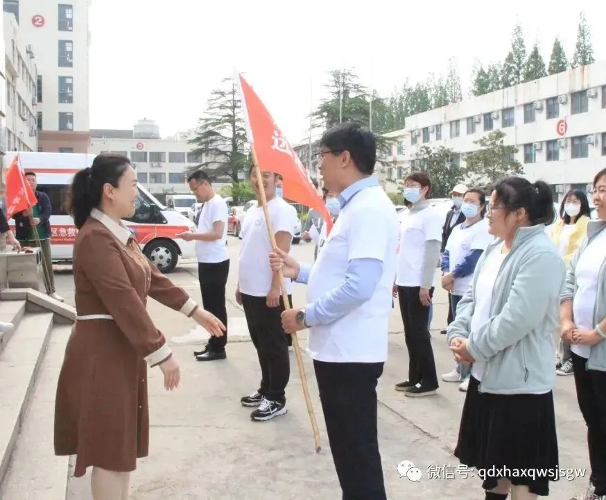 启动仪式上,陈英将标有三支队伍名称的队旗交到三位队长手上。启动仪式后,队员们从医院正门出发,途经中原街、珠山路、双珠路,到达双珠公园,再沿双珠路、珠山路、中原街返回医院。根据到达的先后,评选出了本次启动仪式健走赛前六名。