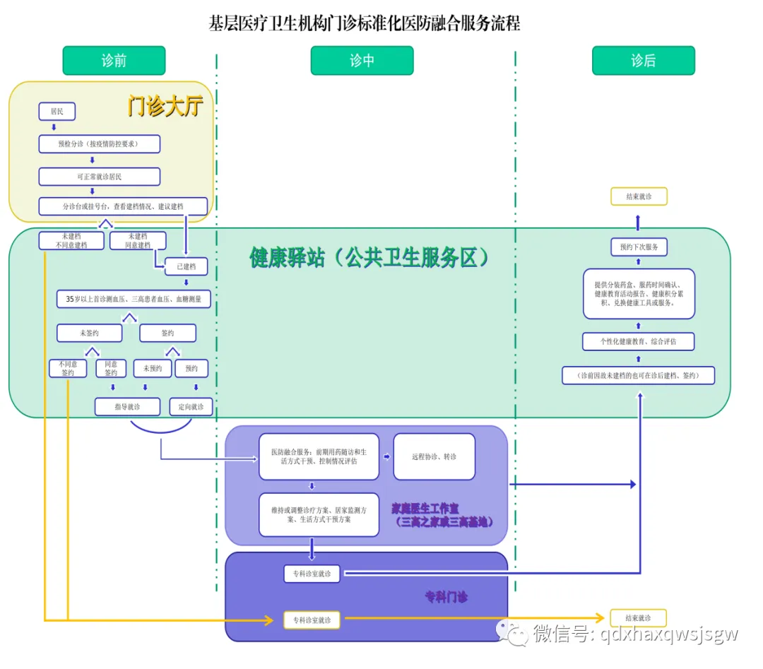 标准化服务流程改造以家庭医生工作室、健康驿站、三高基地(三高之家)为依托,优化门诊布局,合理规划各区域功能、人员和路线,让居民真正享受到一站式服务。