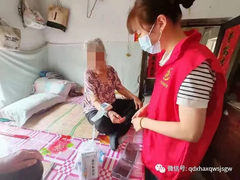 参加此次活动的新时代文明志愿者由大村中心卫生院长护团队组成,志愿者们通过上门入户的形式到老年人及行动不便者的家中,为他们提供血压血糖测量等服务,了解其身体状况,提供进一步的个性化医疗服务。