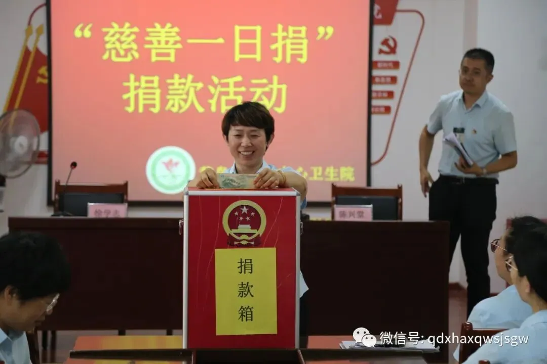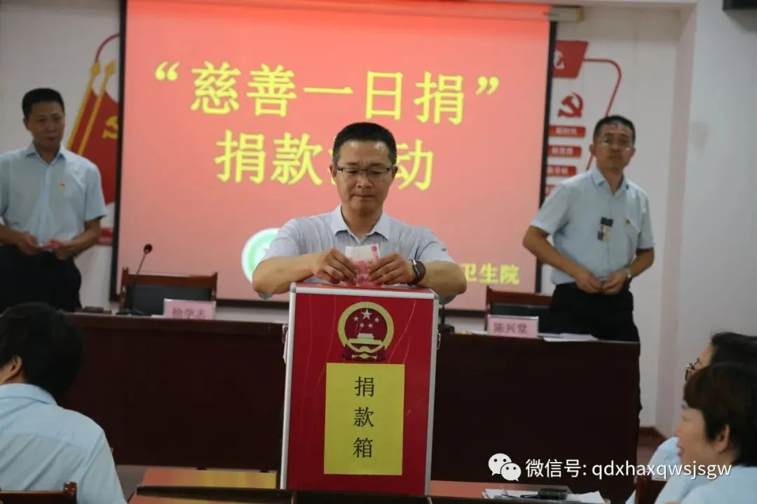 活动前,刘雪院长宣读了《关于开展2023年全区“慈善一日捐”活动的通知》,向全院干部职工宣传参与慈善活动的重要意义。捐赠现场,大家将一份又一份爱心捐款投入捐款箱,用实际行动表达对慈善事业的一片热忱。此次捐赠活动所得善款将全额交至黄岛区慈善总会。
