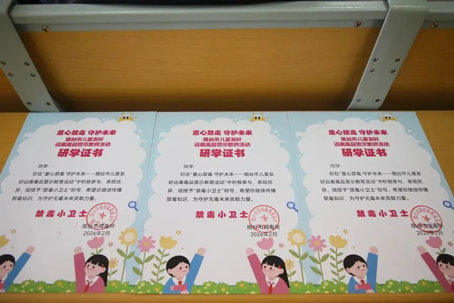 活动中,孩子们在工作人员的引导下,先后参观了戒毒人员的习艺劳动、生活和学习场所,通过沉浸式实地观摩,直观了解了戒毒人员的日常管理与康复环境,深刻感受毒品对个人、家庭和社会带来的危害。通过近距离观察各类仿真毒品模型,孩子们进一步提高了对毒品的直观辨识能力,加深了对毒品伪装性、危害性的认识。在多媒体教室,戒毒所警官以《守护纯真童年,对毒品说“不”》 为题,围绕毒品的基本知识、毒品的危害及如何做好防毒拒毒等内容,为大家上了一堂生动的禁吸戒毒法治教育课,系统普及禁毒知识,引导孩子们树立“抵制毒品,从我做起”的健康观念,并为每位孩子颁发“禁毒小卫士”证书,号召大家争做禁毒宣传员,共同守护无毒未来。