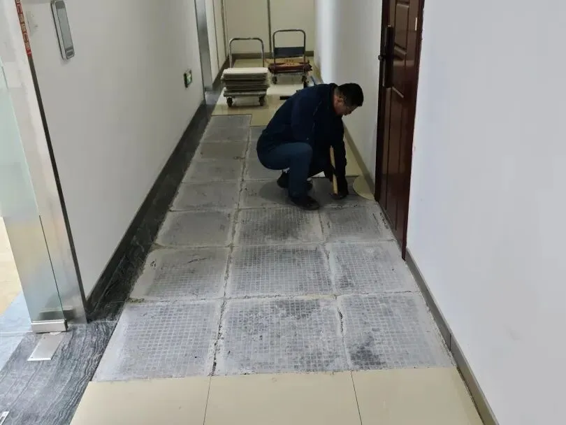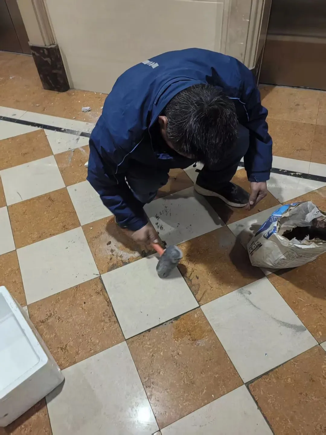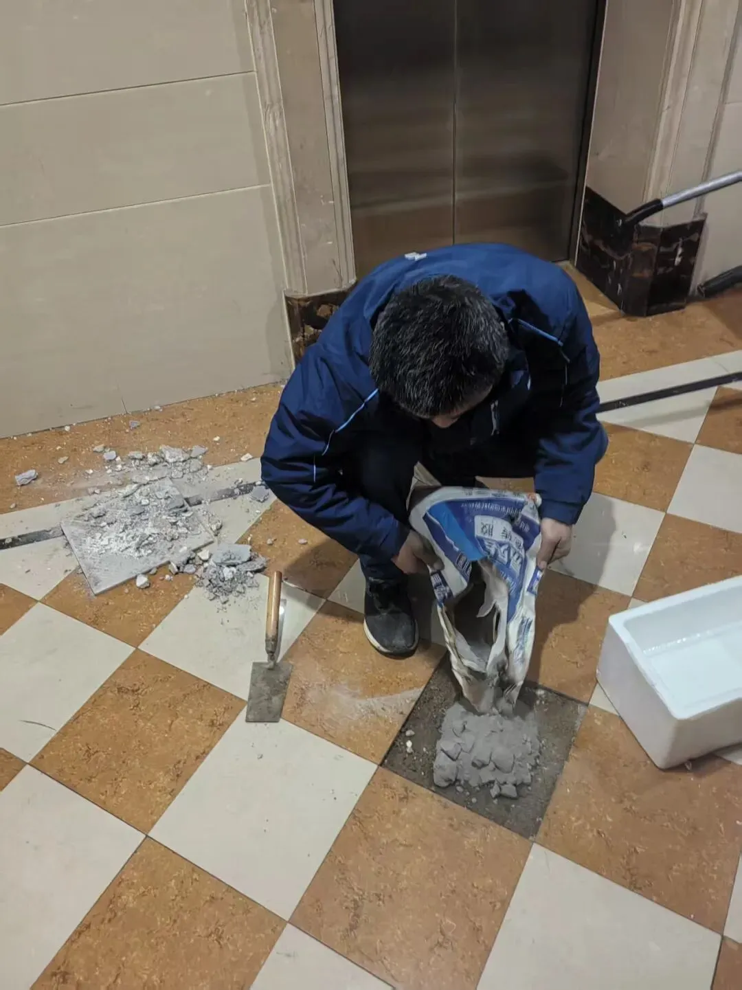 10、写字楼每日对标准层巡检发现走廊墙面起鼓、脱落进行维修,地面破损、松动的瓷砖进行更换,共维修更换瓷砖约140余块