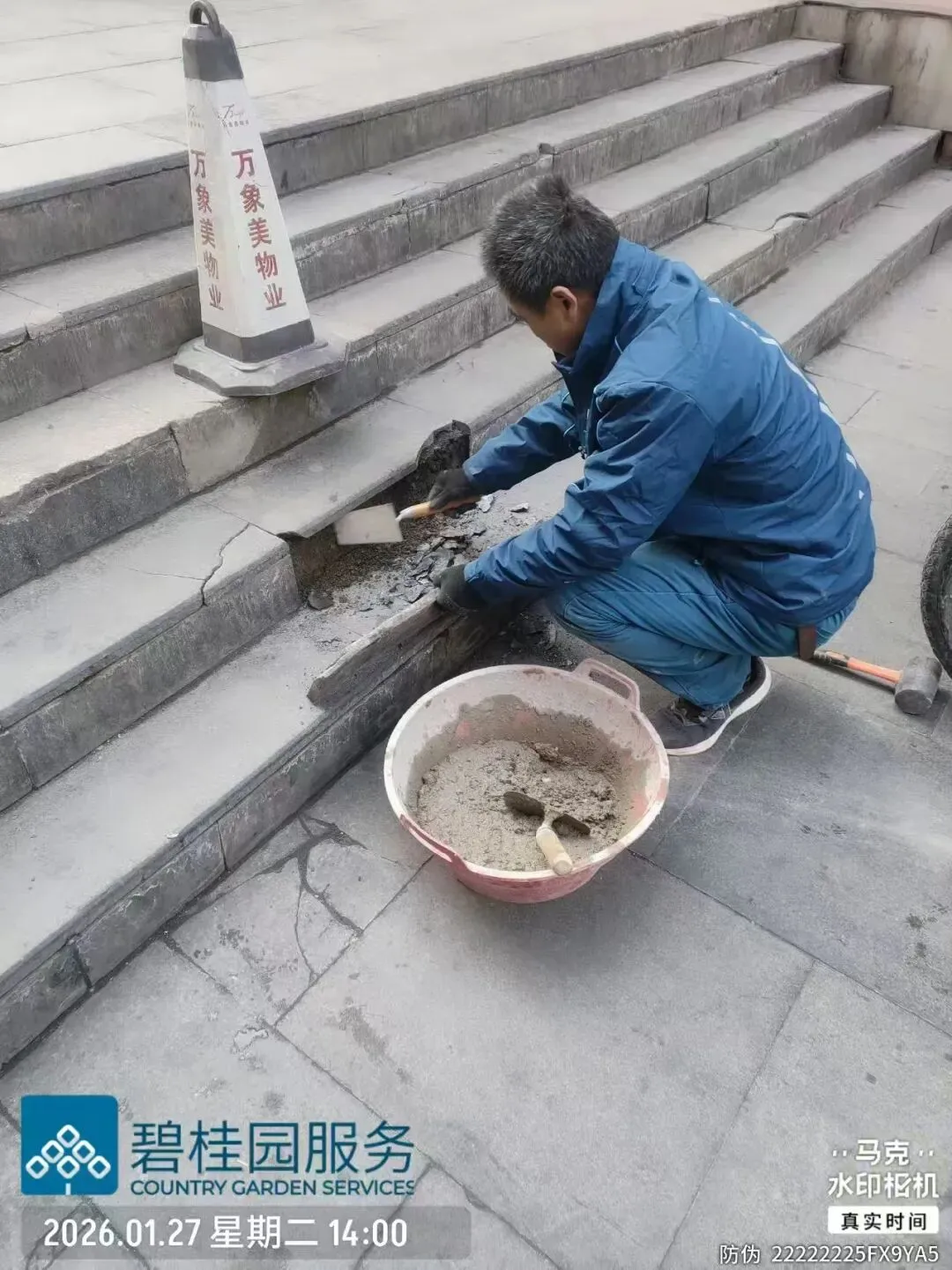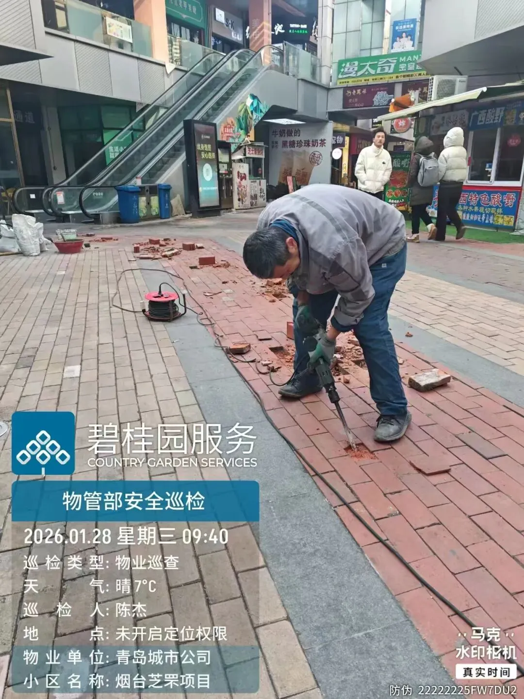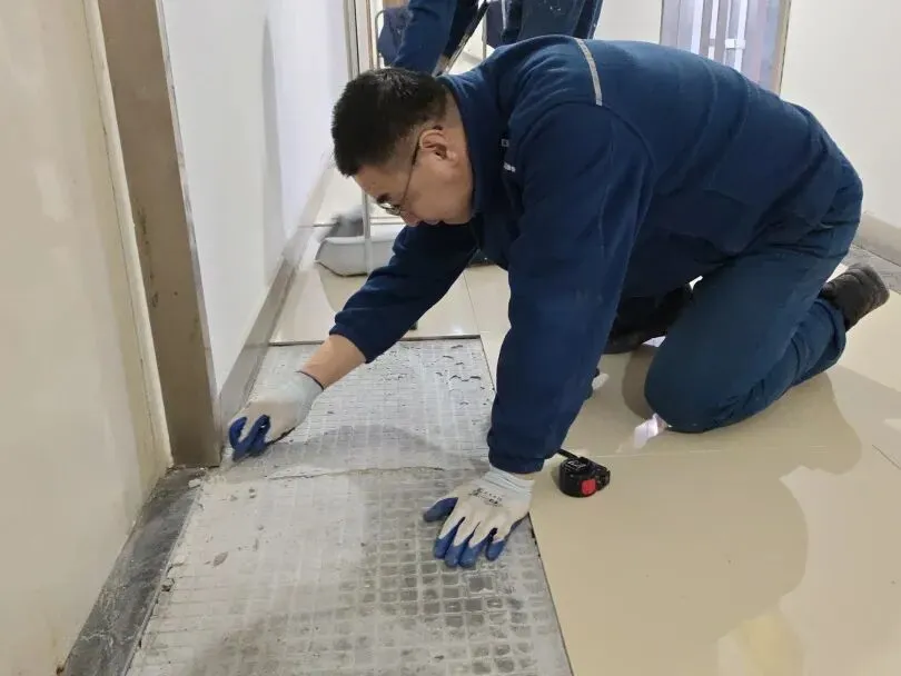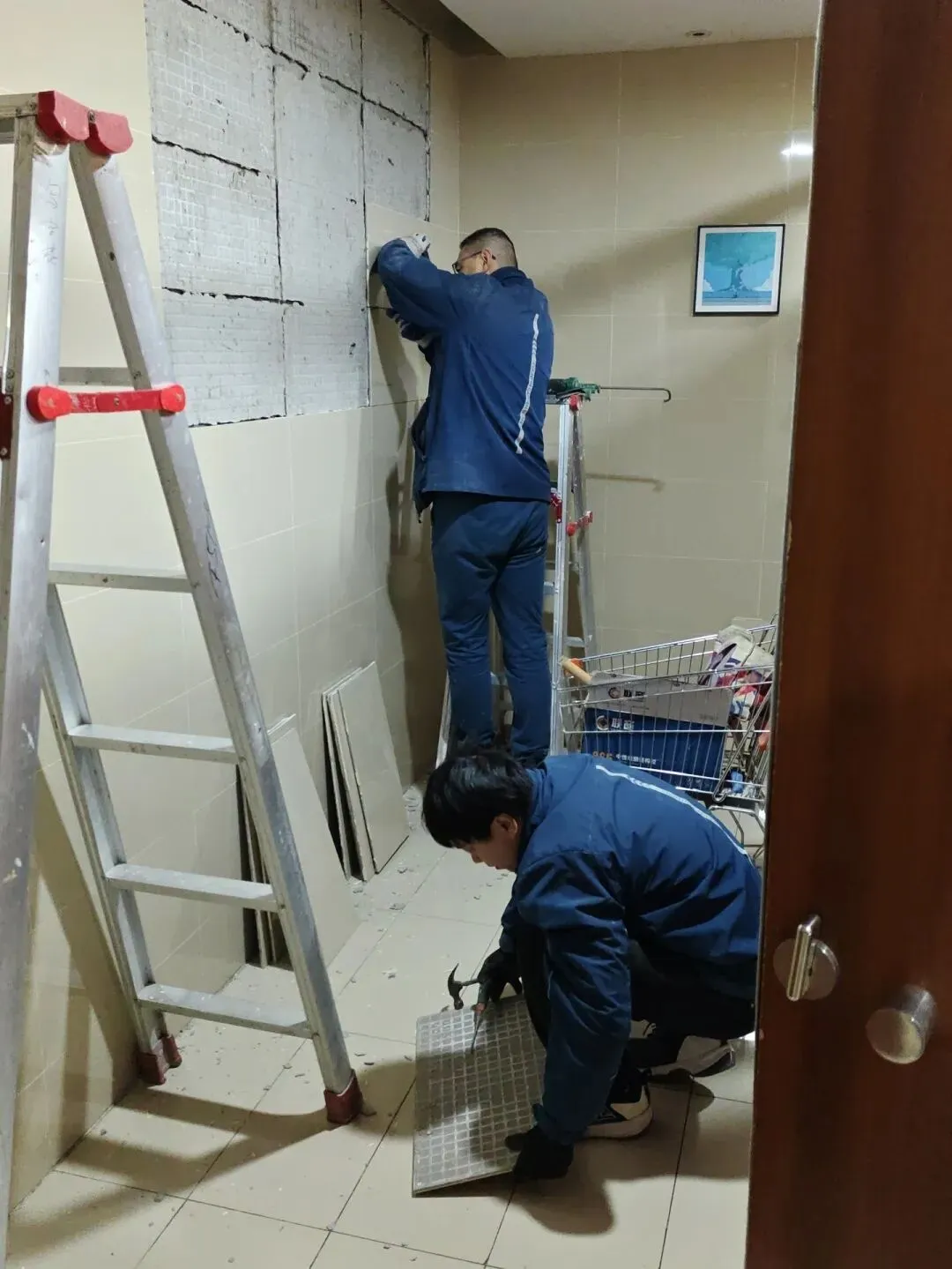 10、写字楼每日对标准层巡检发现走廊墙面起鼓、脱落进行维修,地面破损、松动的瓷砖进行更换,共维修更换瓷砖约140余块