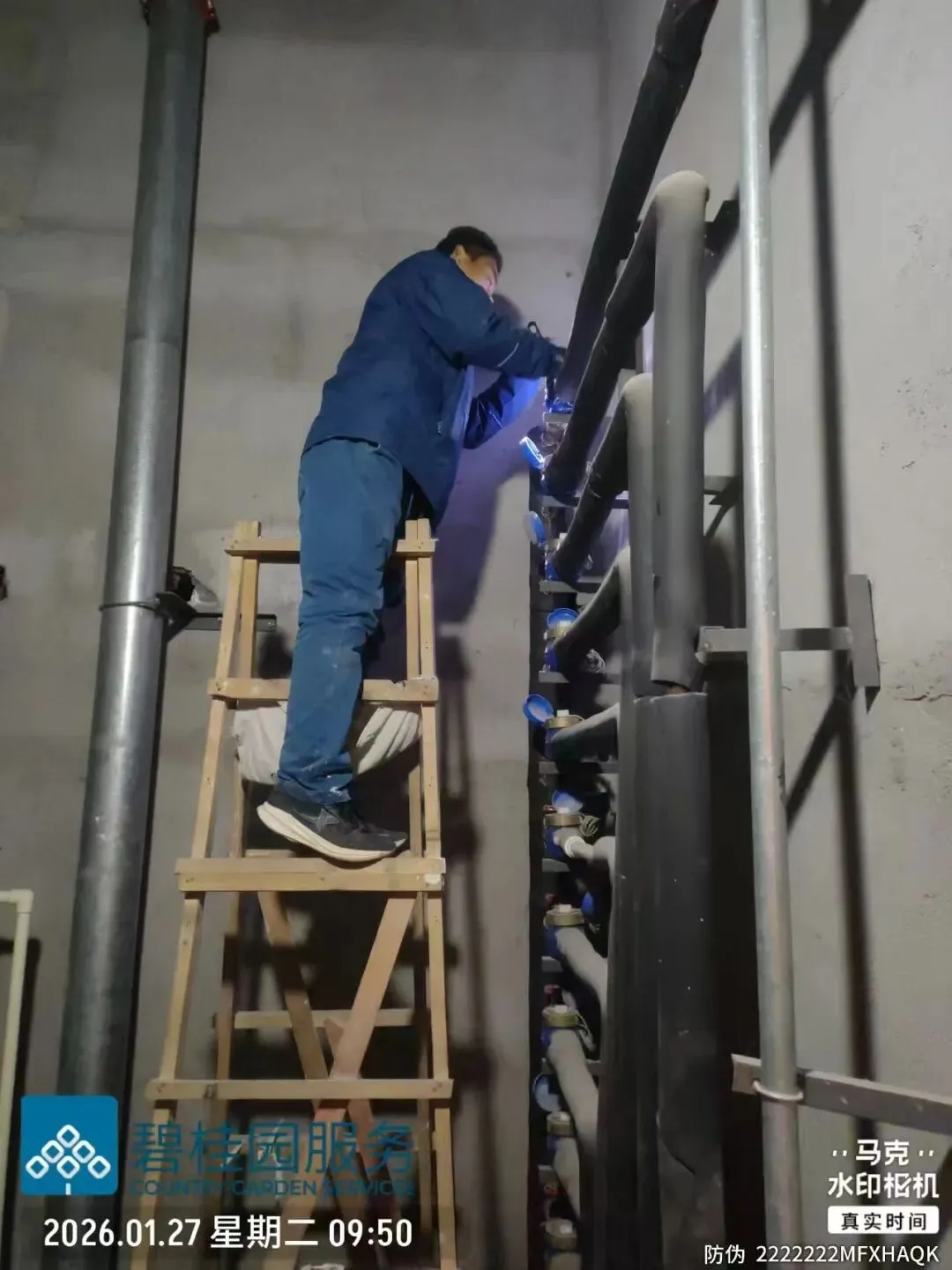 3、写字楼冬季供热开启运行期间,每日对设备运行情况巡查,管路补水排气,配合华阳供热维修暖气进水管路漏水
