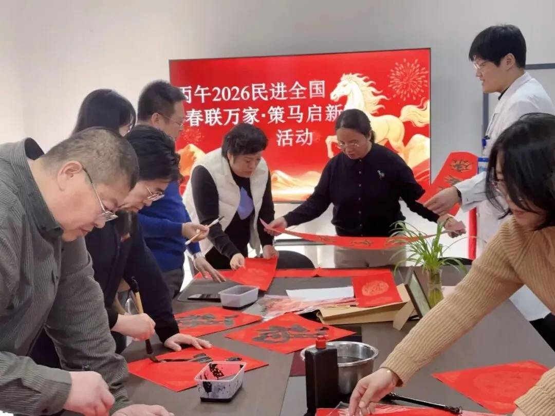 与此同时,2026年民进全国“春联万家·策马启新”活动也在这里温暖上演。民进会员中的书法爱好者们挥毫泼墨,将一个个苍劲有力、寓意吉祥的“福”字送到居民手中。墨香四溢,笑语盈盈,浓浓的年味在现场流淌。