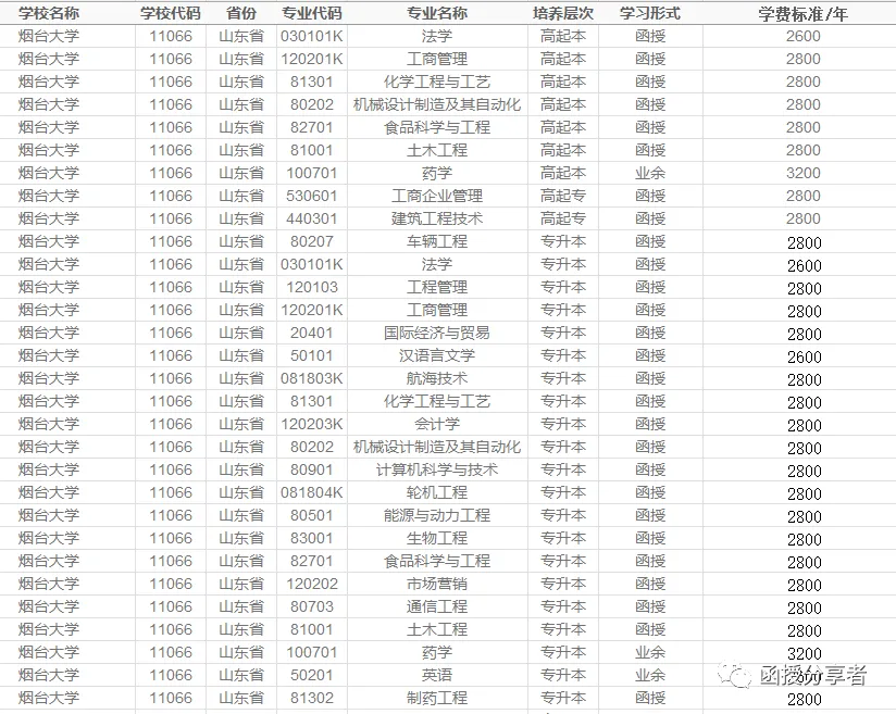 烟台大学坐落于国家历史文化名城、最佳中国魅力城市、山东新旧动能转换综合试验区核心区之一——烟台,是国内距海最近、拥有海岸线最长的滨海大学,是山东省属重点综合性大学。烟台大学创建于1984年7月,是由北京大学、清华大学援助建成。1995年,学校顺利通过原国家教委本科教学水平合格评价。1998年成为硕士学位授予权单位。2004年在教育部本科教学工作水平评估中获得“优秀”等次。2012年获批山东省名校工程首批立项建设单位和服务国家特殊需求博士人才培养项目。2018年、2019年“药学”“材料科学与工程”学科分别入选山东省“一流学科”建设立项。现有1个“服务国家特殊需求博士人才培养项目”,2个山东省“一流学科”,21个硕士学位授权一级学科,7个硕士专业学位授权类别。世界一流学科排名前400和中国最好学科排名前20%的学科各1个。拥有一支结构合理、素质精良的师资队伍。现有专任教师1562人,其中具有高级以上专业技术职务人员758人,具有博士学位者748人,中国工程院院士1人,长江学者奖励计划特聘教授等国家级人才8人,泰山学者工程入选者20人。烟台大学现具有博士生、硕士生、本科生招生资格和相应学位授予权以及博士后研究人员招收资格。学校现设22个学院(部),65个研究院所,66个本科专业,涵盖文、理、工、法、农、医、经济、管理、教育、艺术等10个学科门类。全日制在校本科生、研究生、留学生共3万余人,本科生源跨全国30个省(市、区)。另有成人高等教育学生和全日制自考助学班学生2万余人,形成了本科教育、研究生教育、留学生教育和继续教育等多类型、多层次的办学格局。我校的成人高等教育开办于1989年,经过30余年的发展,办学规模逐渐扩大,办学水平显著提高,多次受到省主管部门的嘉奖。现有2个省级成人高等教育品牌专业,15门省级成人高等教育特色课程,14门省级数字化课程。目前,开设30个本、专科专业,成人在校生二万余人。二、招生专业