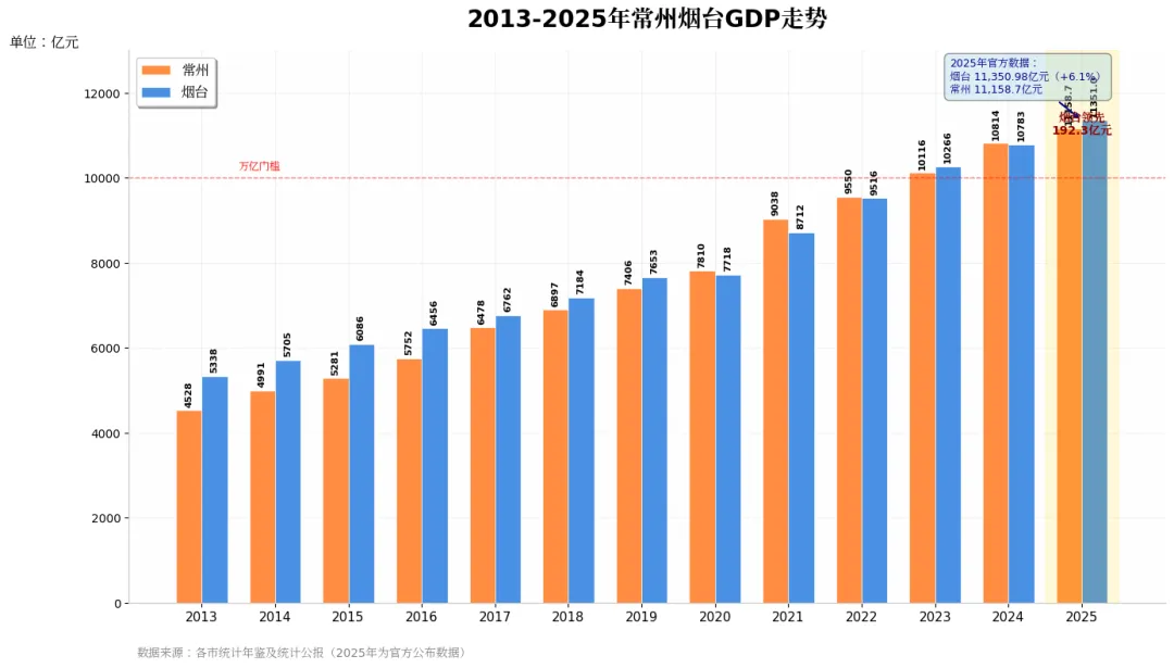 2月2日,烟台市2025年地区生产总值具体数字公布:11350.98亿元。这一数字,再次实现对常州的超越,小胜不到200亿元。烟台稳固了全国第25的位置。