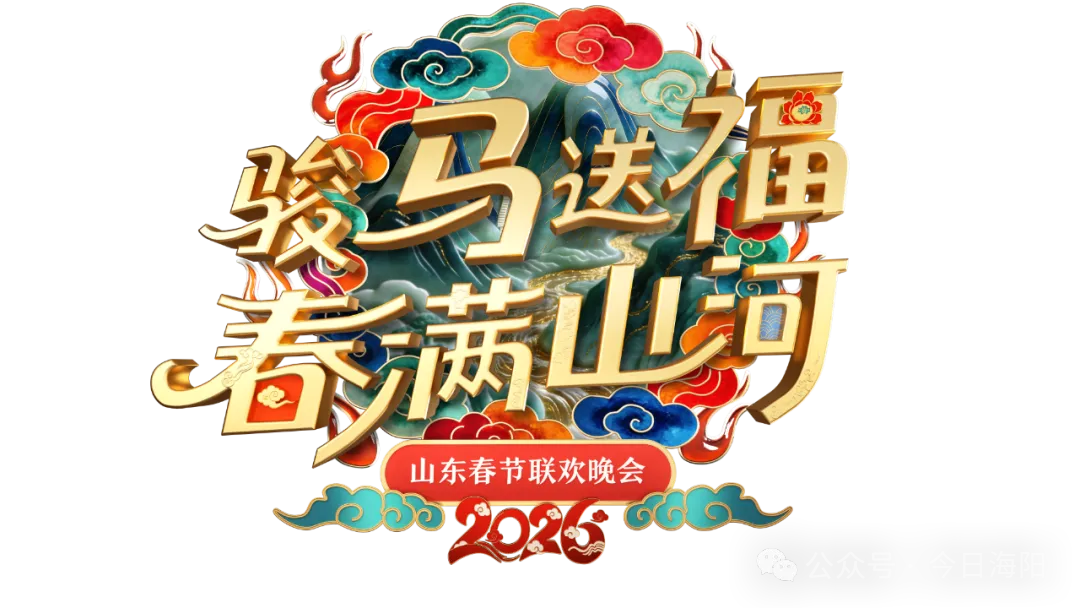同日,2026山东春晚Logo和主视觉正式官宣发布。主视觉以“骏马送福・春满山河”为核心主题,将传统年俗元素、齐鲁山河风貌与现代视觉审美相融合,在传递新春祝福的同时,彰显山东深厚文化底蕴与蓬勃向上的精神气质。Logo设计采用鎏金质感的立体艺术化书法字体,笔画中巧妙融入传统云纹、火焰纹、水纹与牡丹纹样,进一步强化生肖马年的标识性,也象征山东兼容传统底蕴与现代进取的寓意。