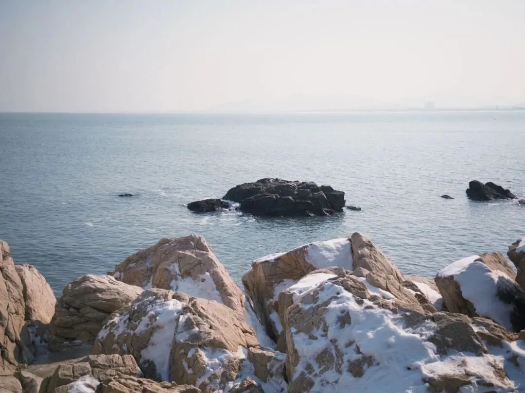 獐岛上大块大块覆盖着积雪的岩石让人寸步难行,却是大海天然的取景框。取景框里会有散落在远处的小岛,也会有一支悠哉悠哉驶过的渔船,远远地还能看到类似海上石油钻井平台的身影。若是夏天一定会有许多人坐上快艇在海上乘风破浪,冬天的海风让人们默契地选择了在岸边欣赏,也让养马岛拾得一片几乎只能听得见海浪声的宁静与惬意。