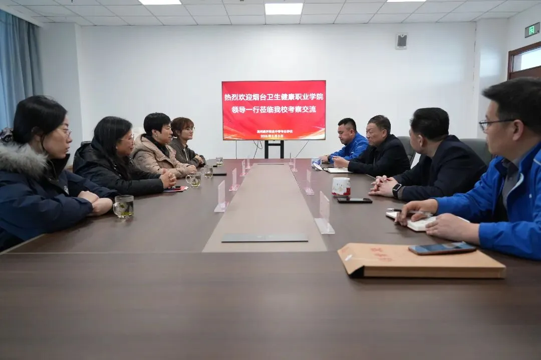 2026年2月3日,烟台卫生健康职业学院口腔医学系综合科科长、系负责人王建磊,康护系学工处科长赵蓉,学工处就业科副科长王旭一行莅临我校,开展校际交流专项考察与座谈。滨州健康科技职业学院副院长朱建宏,副院长胡云斗,滨州康养职业中等专业学校教务主任王兆喜,滨州康养职业中等专业学校招生办副主任张伟陪同调研并参加座谈会。