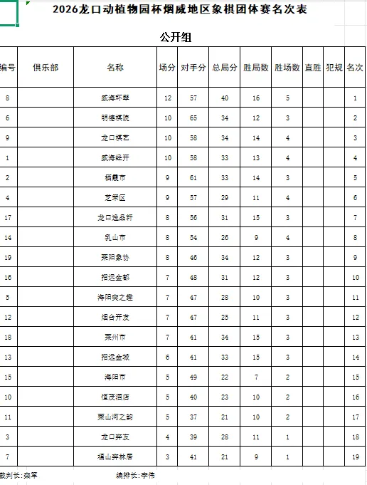 2026年2月1日,由龙口市中国象棋协会主办的“龙口动植物园杯”烟威地区象棋团体赛在龙口市博雅书院收官。
